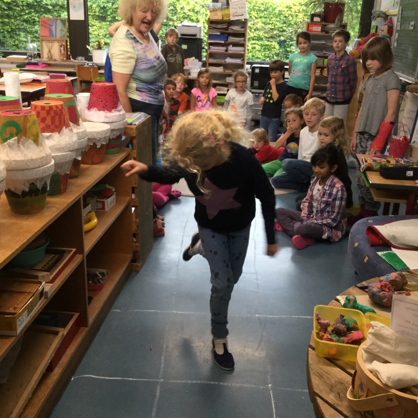 Wir lernten das Spiel Kästchen hüpfen. Zuerst muss ein Stein geworfen werden. Dann hüpft man los und nennt die Wochentage der Reihe nach, auf dem Sonntag Feld darf man sich ausruhen. Du darfst die ganze Zeit nur auf einem Bein hüpfen. Wenn du bei dem Stein angekommen bist, musst du diesen mit einer Hand aufheben und dabei weiter auf einem Bein stehen. Dann gehts zurück. Es war Regenwetter also haben wir im Klassenzimmer gespielt. Danach haben wir es im Pausenhof ausprobiert. Man kann das zu zweit oder auch zu mehr Kindern spielen.