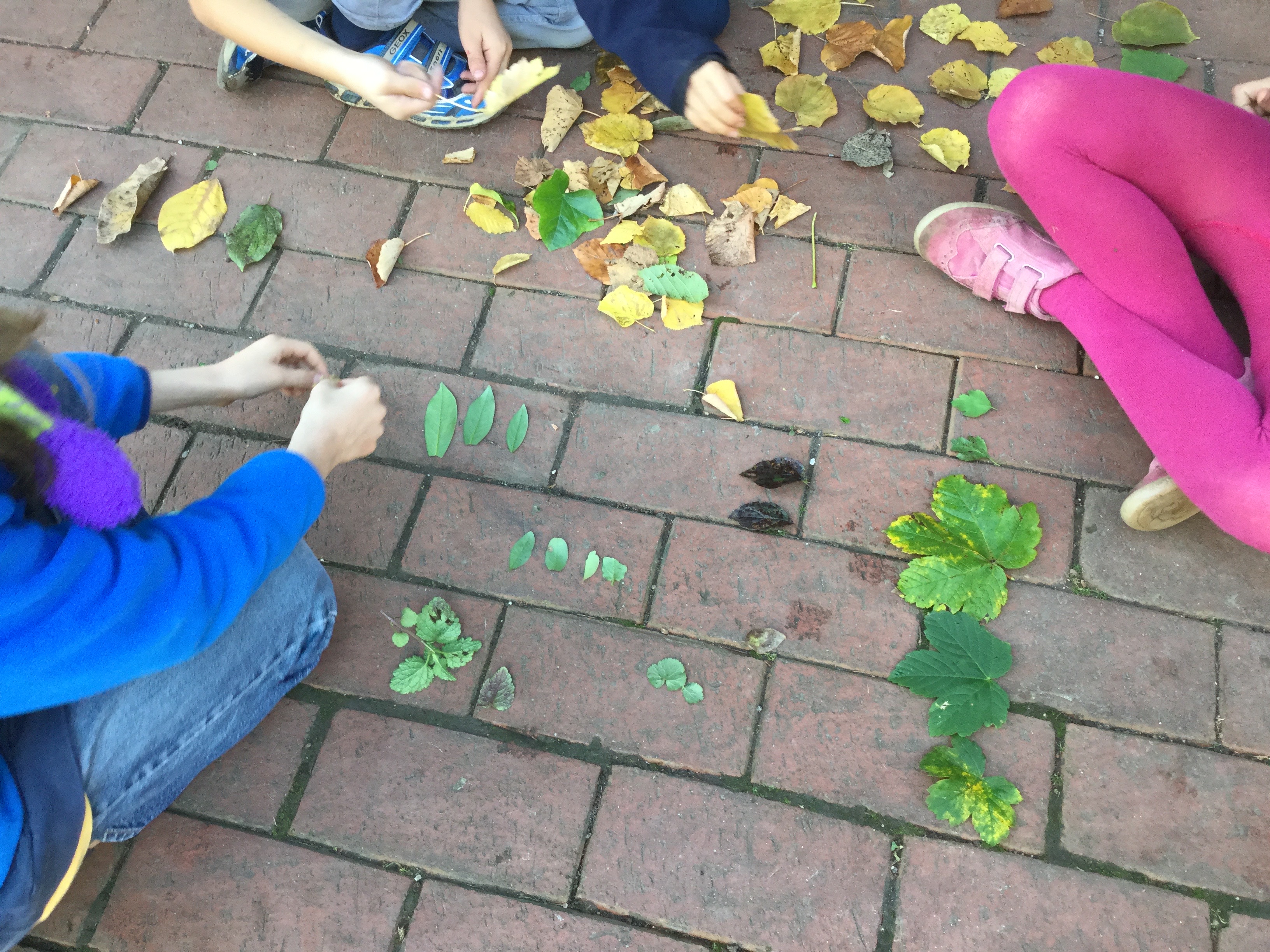 Unterricht vor der Schulhaustüre, in Gruppen erfahren wie Zusammenarbeit klappt, Kriterien für Sortierung festlegen