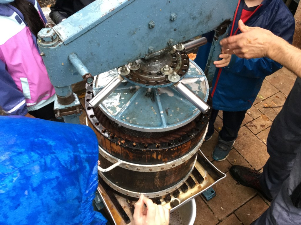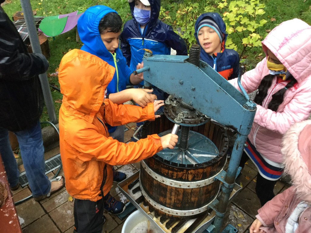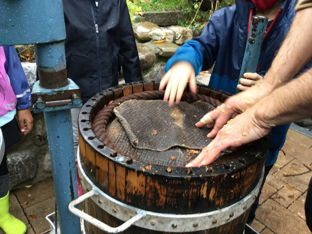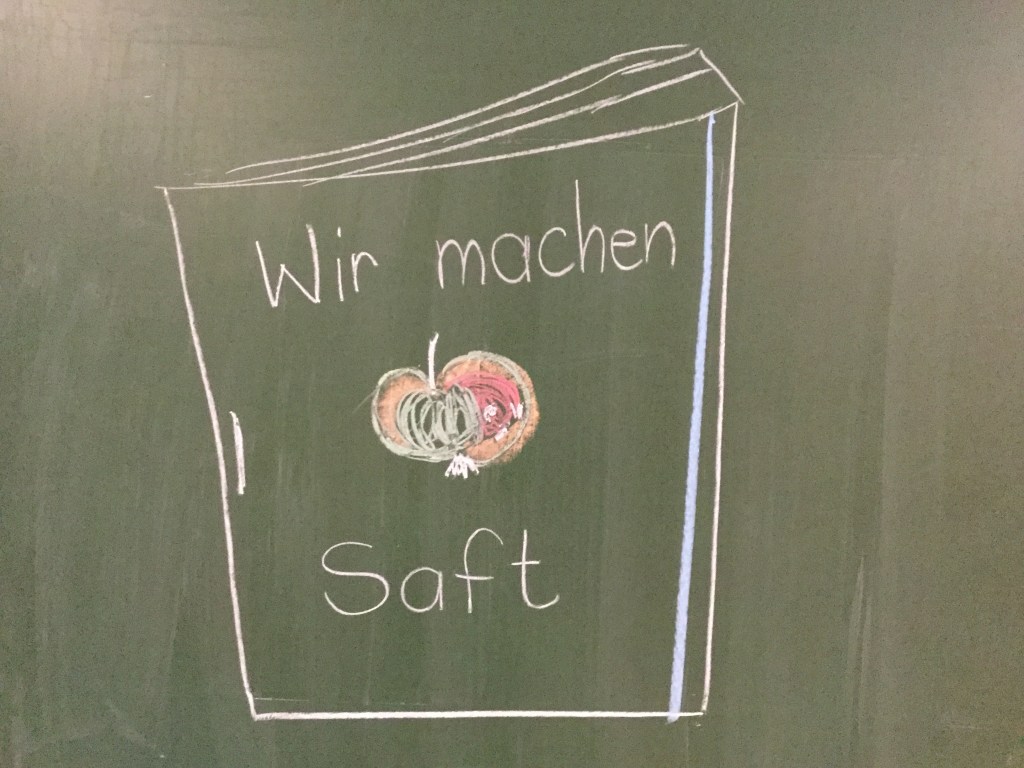 Das macht Spass euch beim Apfelsaft pressen zuzusehen. Ich danke, eure Märchenerzählerin. Ach ein Apfelsaft, das hätte der Bursche doch auch, anstatt Wein trinken können.