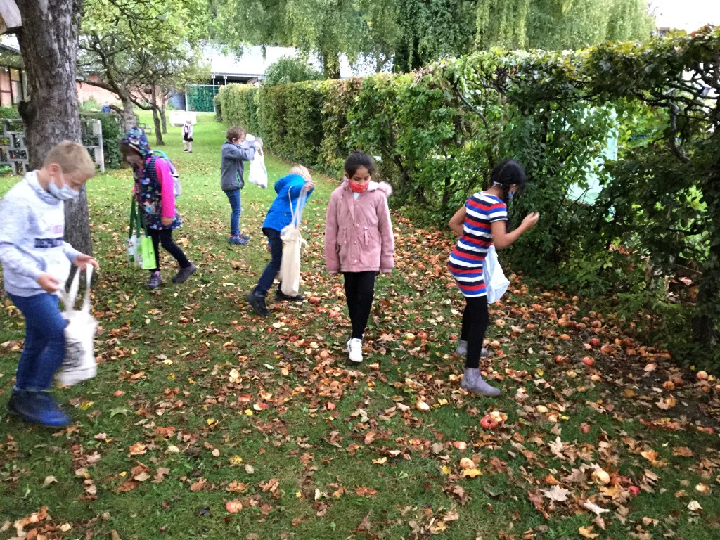 Gemeinsam haben wir die Äpfel getragen.