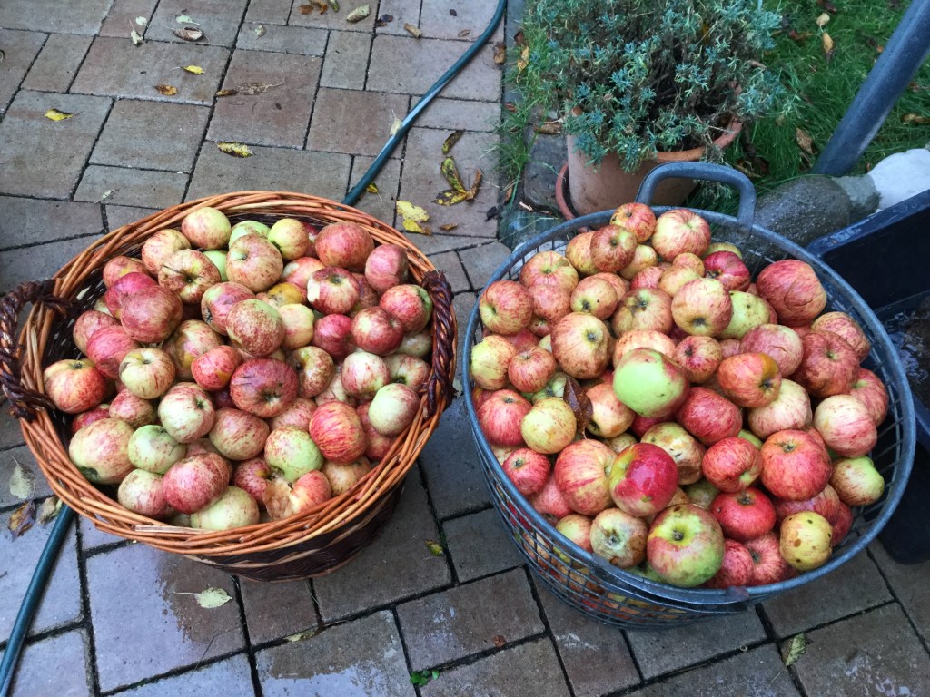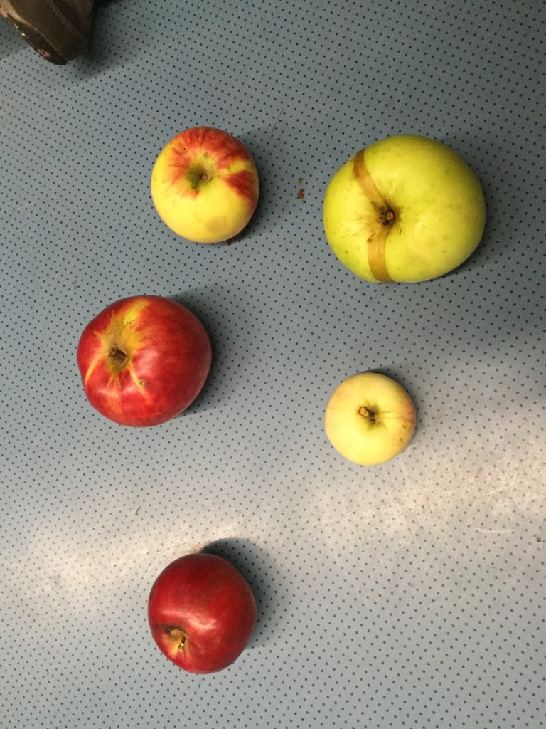 Wir haben Äpfel vor unserer Tür aufgesammelt.