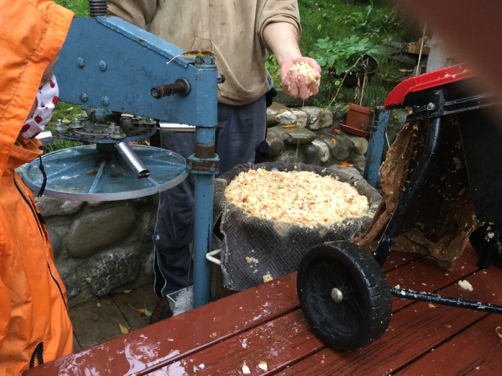 Wenn die Äpfel kleingehäckselt sind kommt gleich viel mehr Saft raus.