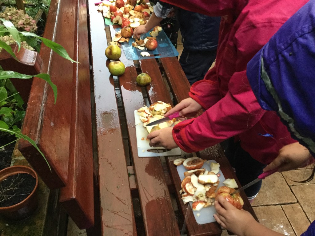 Danach haben wir die Äpfel abgewaschen.