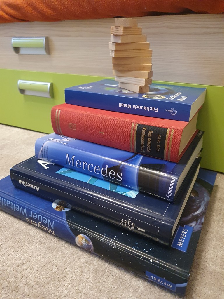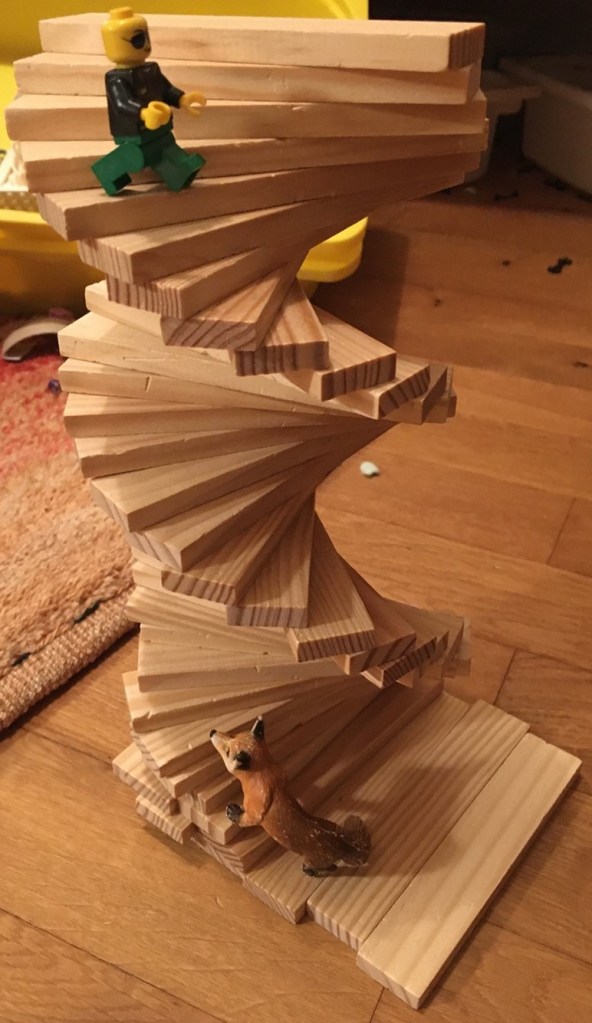 Viele Treppen aus Holz, Schnee oder Büchern.
