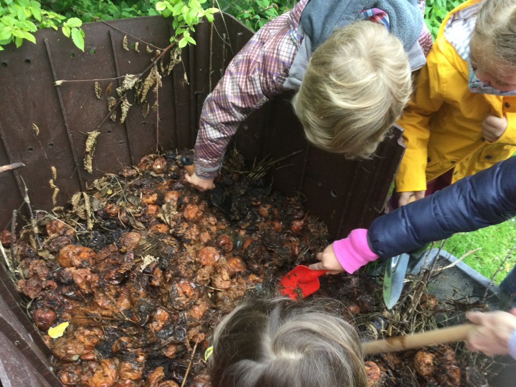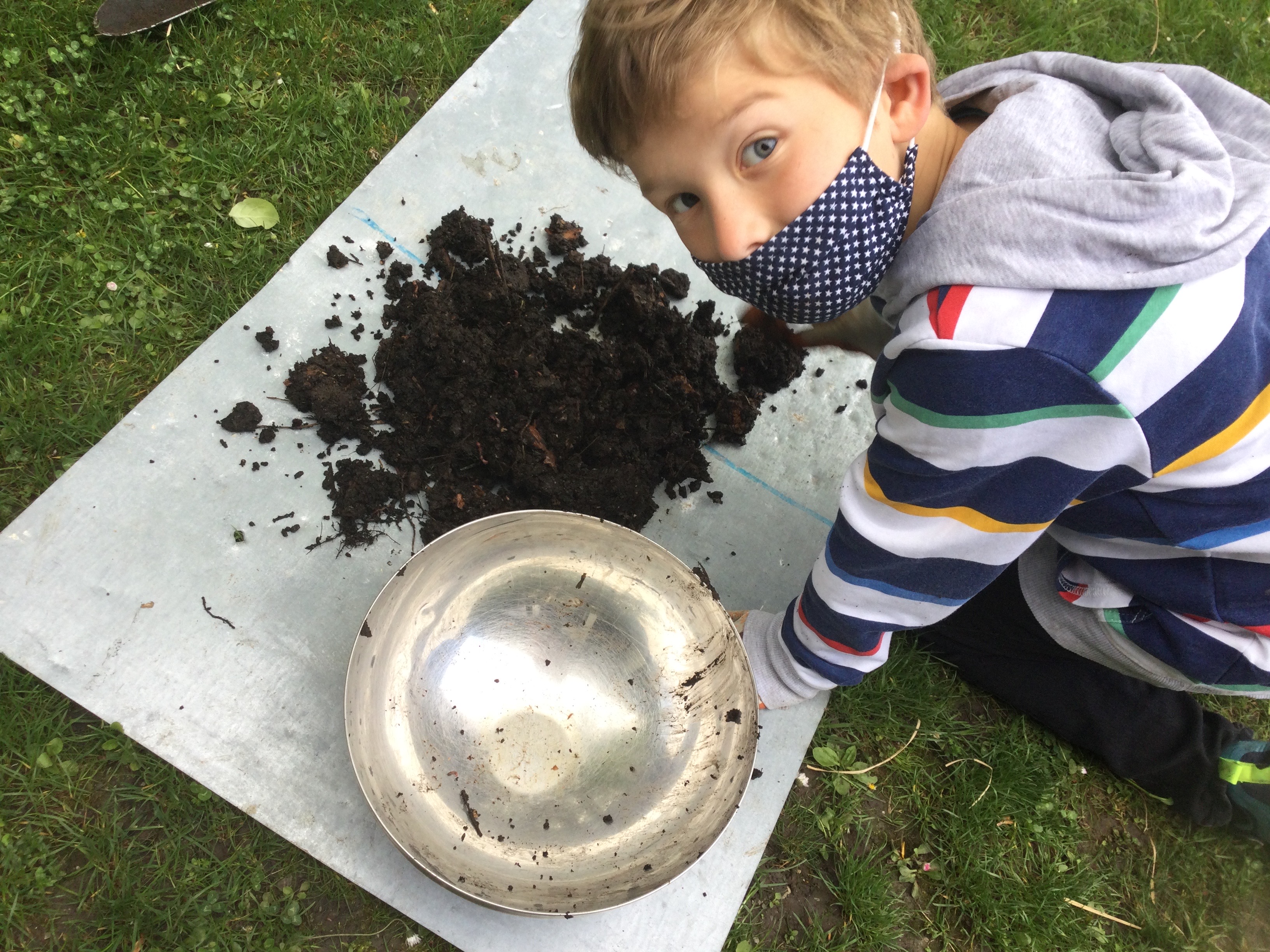 Wir haben die Komposterde geholt.
