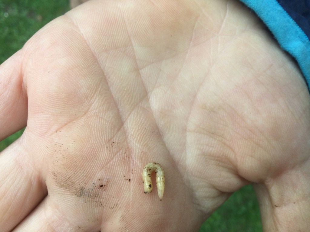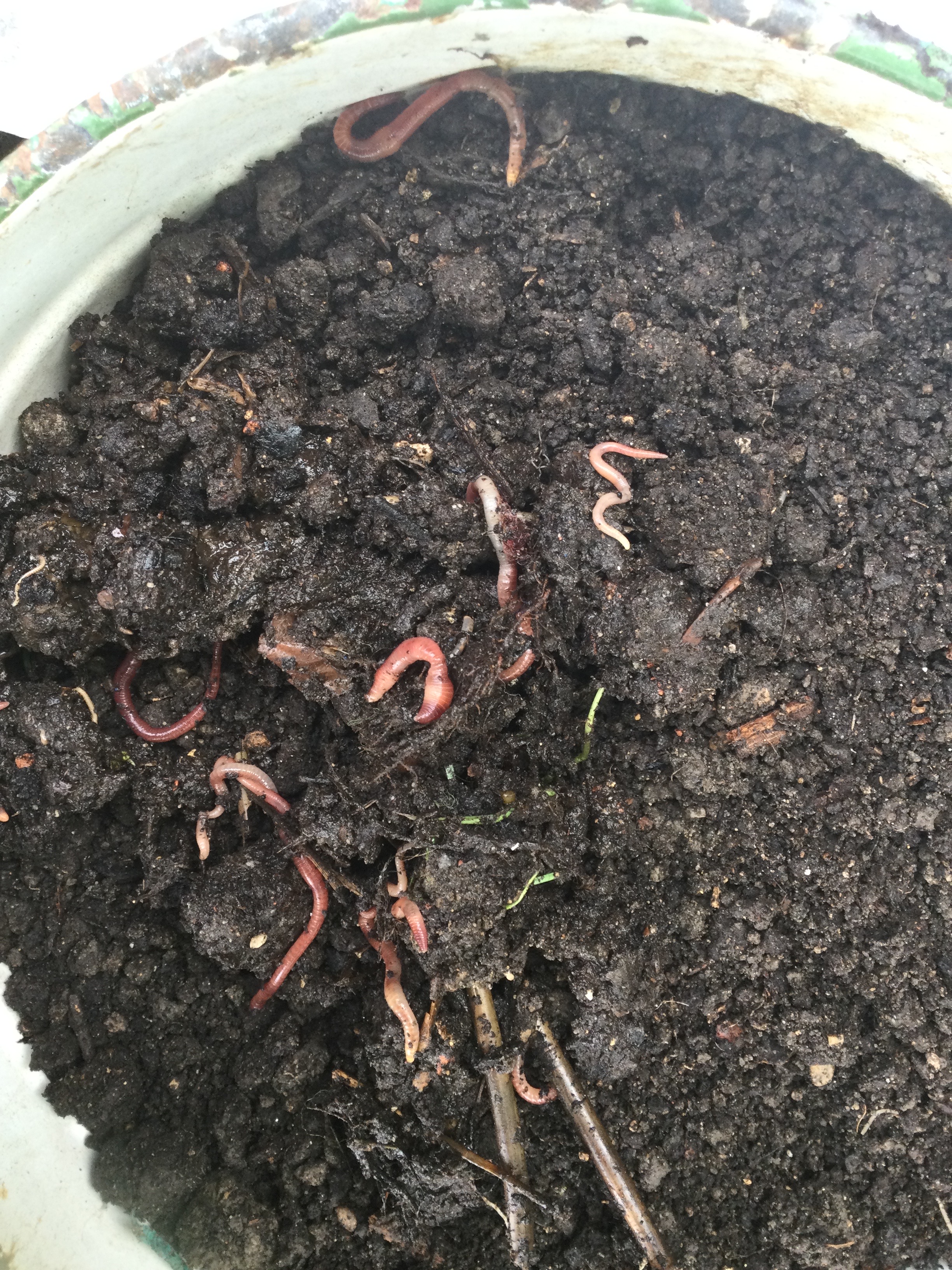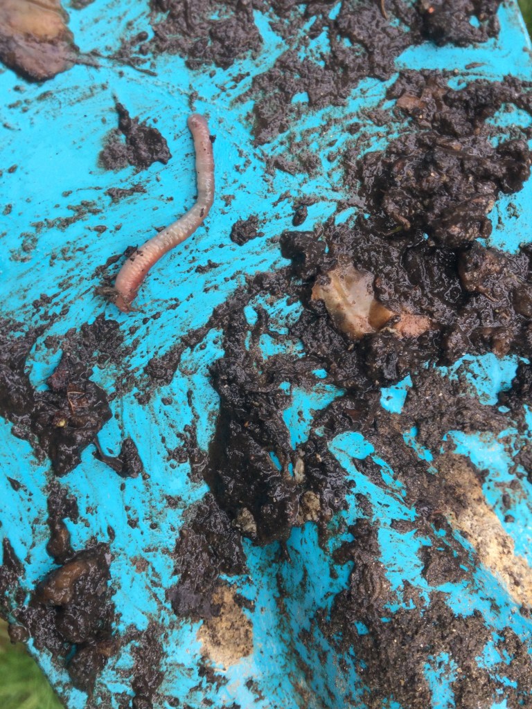 Ich habe 41 Regenwürmer gezählt und 6 große Würmer, 6 Kellerasseln und 1 Hundertfüßler und1Spinne