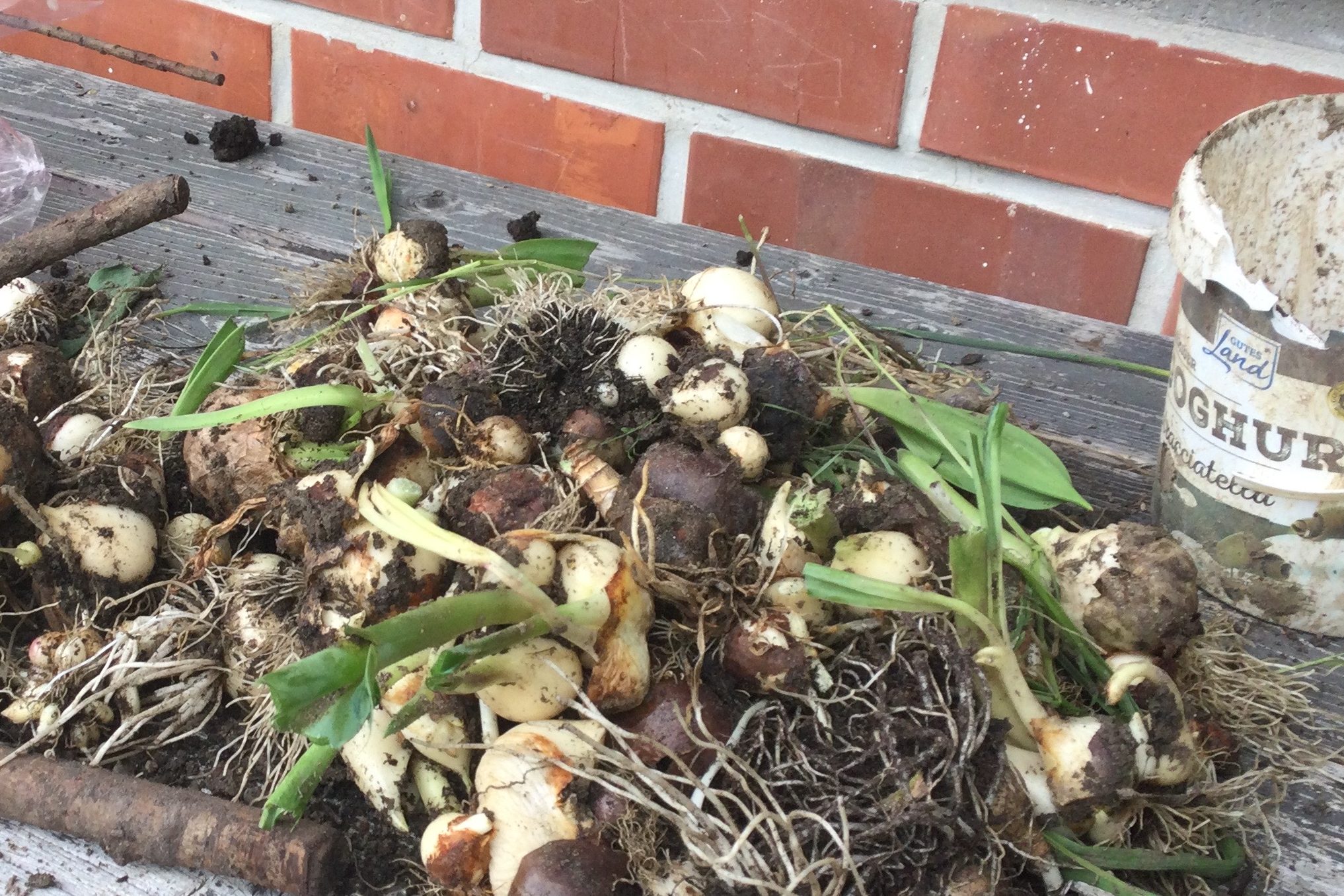 Das sind die Zwiebeln, die wir nächstes Jahr wieder einpflanzen.