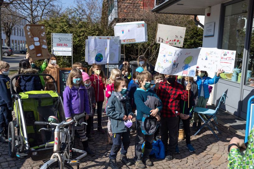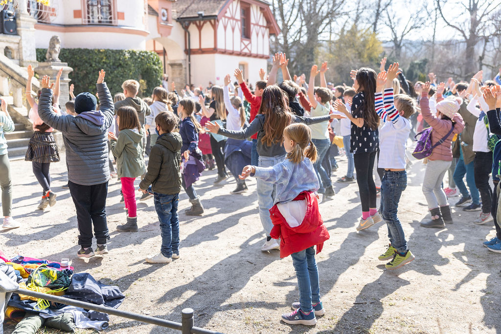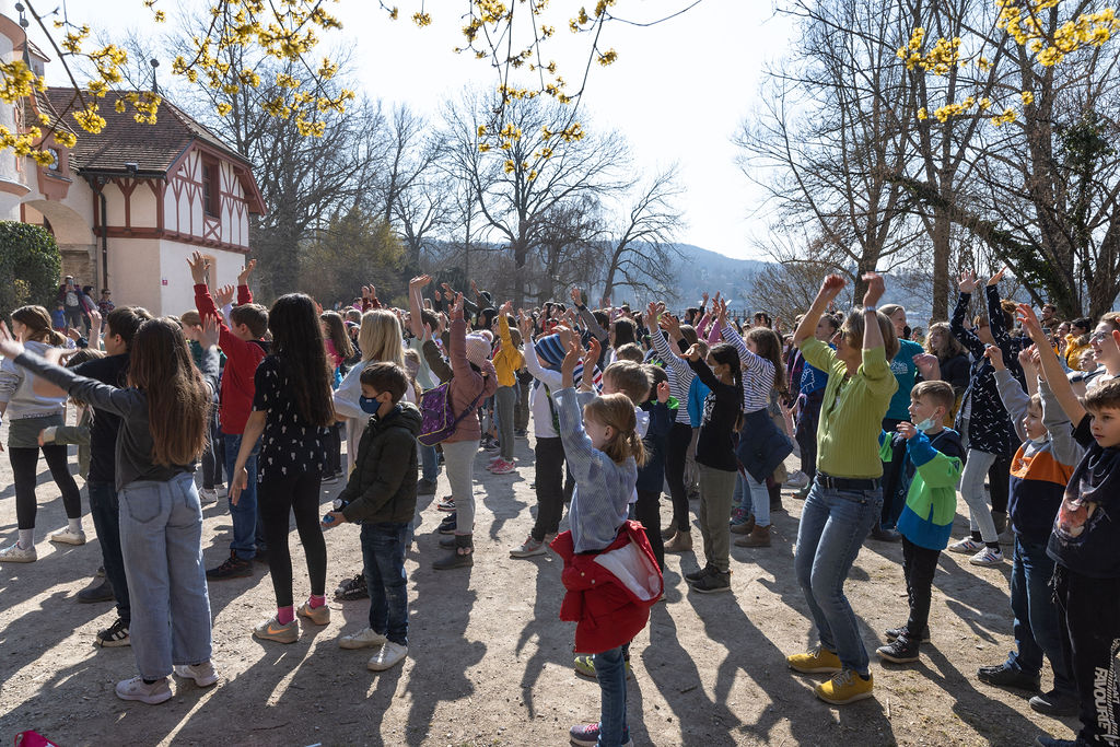 Wir machen einen Klimamarsch durch Herrsching und tanzen einen Flashmob am Kurparkschlössl