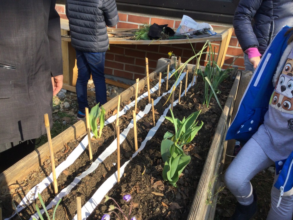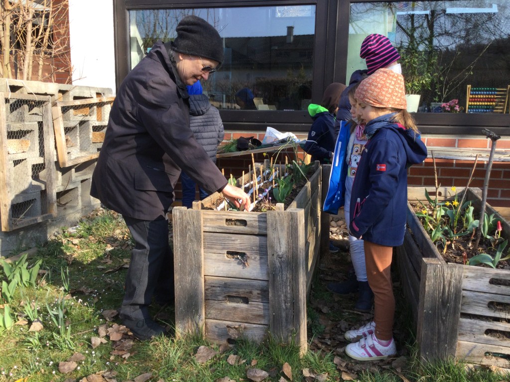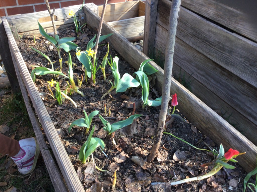 Am Morgen pflegen wir unsere Hochbeete