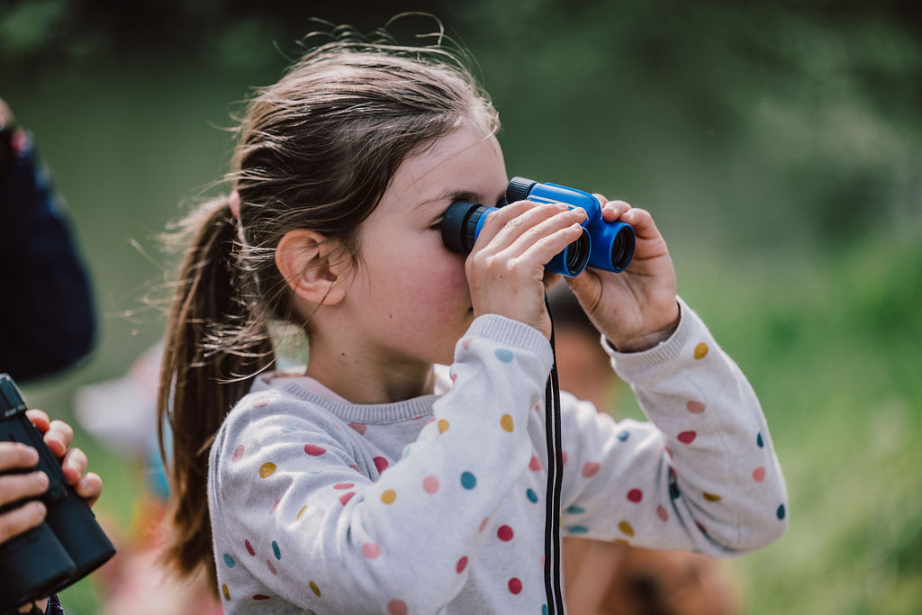 Gut, dass beim Fernglas schauen üben, die Vögel nicht wegfliegen.