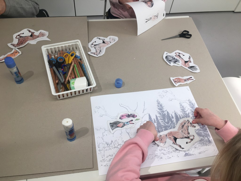 Zum Schluss durften wir die Tiere malen, die wir nur als Schädel gesehen haben: