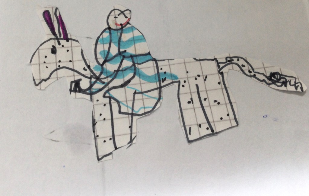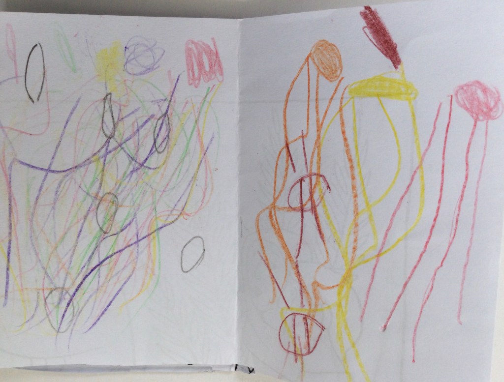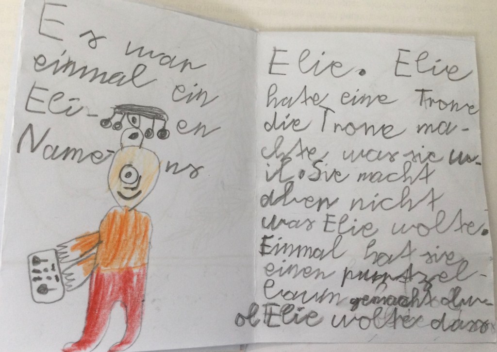 Hast du Lust dir eine Geschichte auszudenken was hier passiert ist. Ich freue mich auf spannende Geschichten. Du kannst sie mir auch erzählen und als Tonaufnahme schicken. Vielleicht magst du ja die Töne so machen wie im Theater, kannst du dich noch erinnern. ( mit Wasser, einem Buch mit Schuhen oder Papier zerknüllen.)