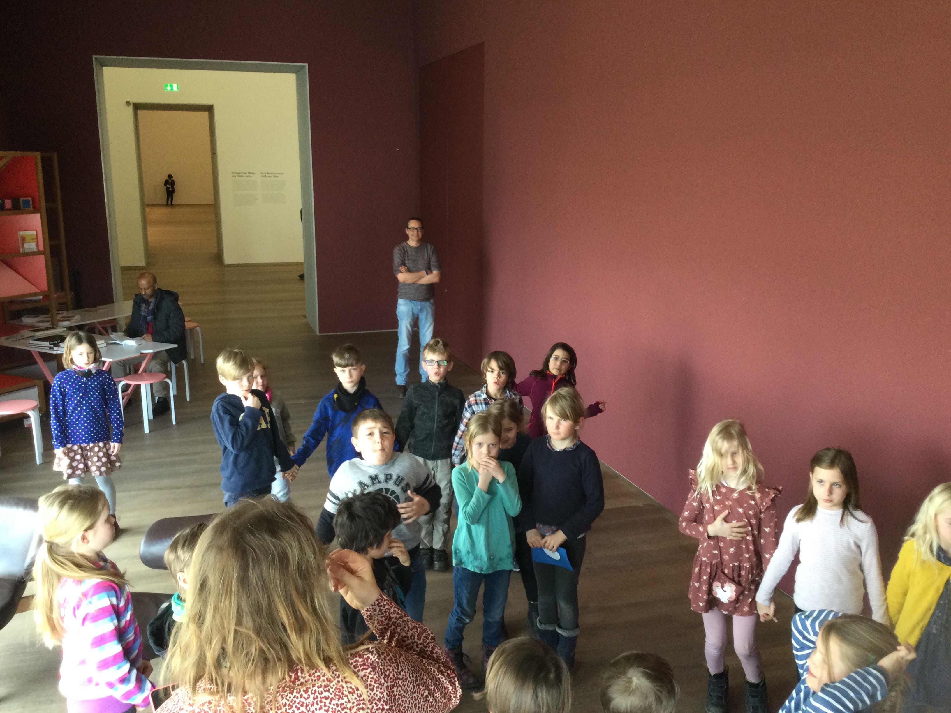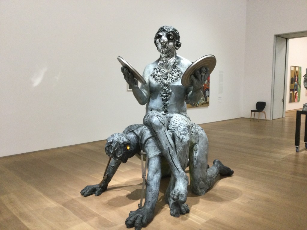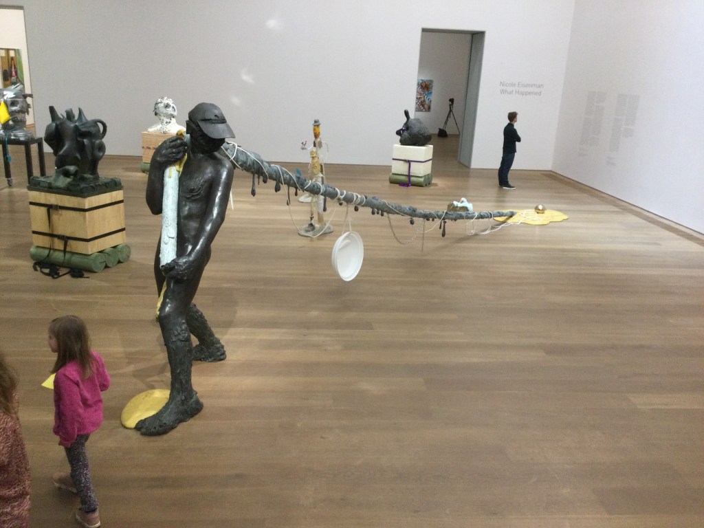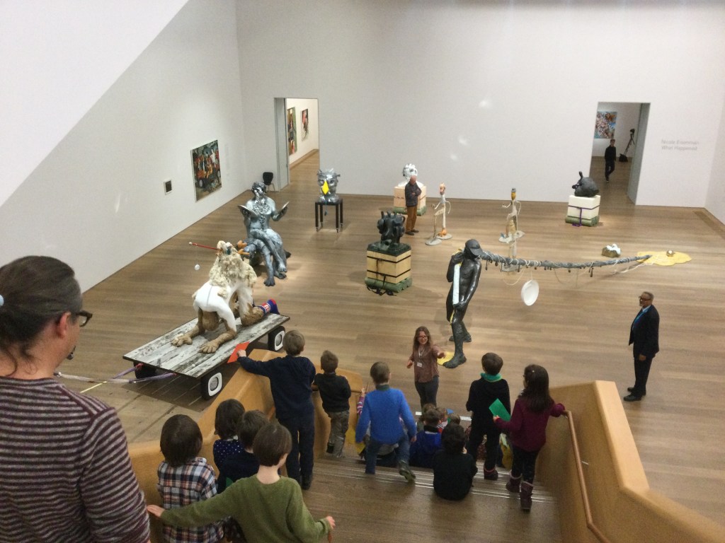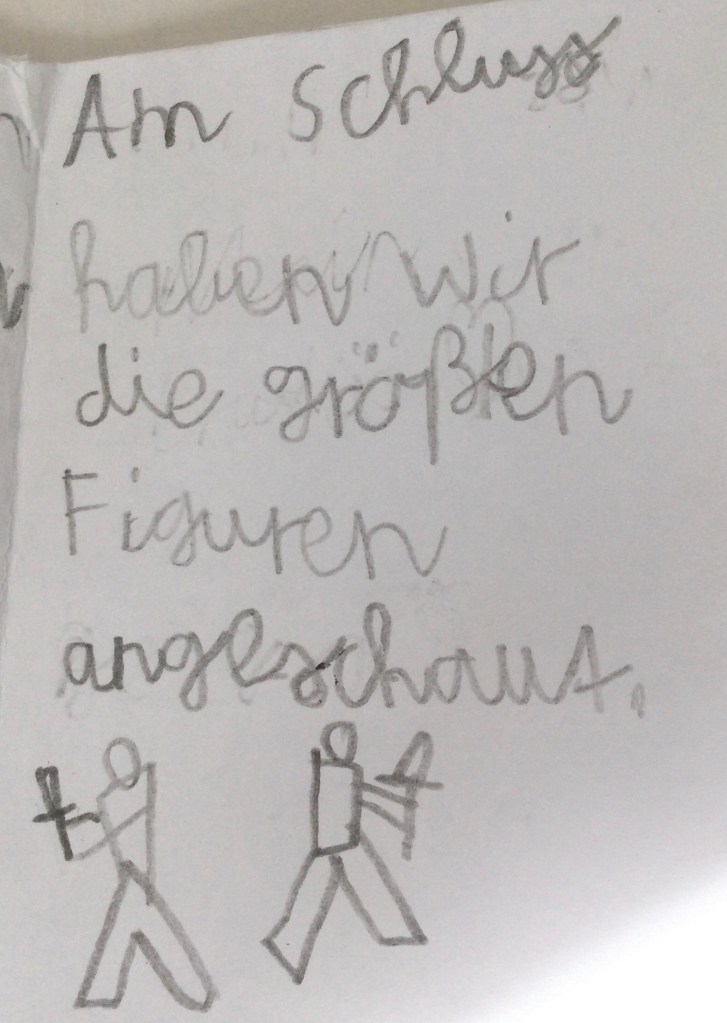 Wir entdecken Skulpturen, die vor dem Museum stehen. Eine Gruppe, sie gehören zusammen wie wir.