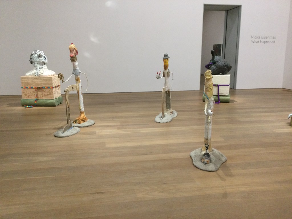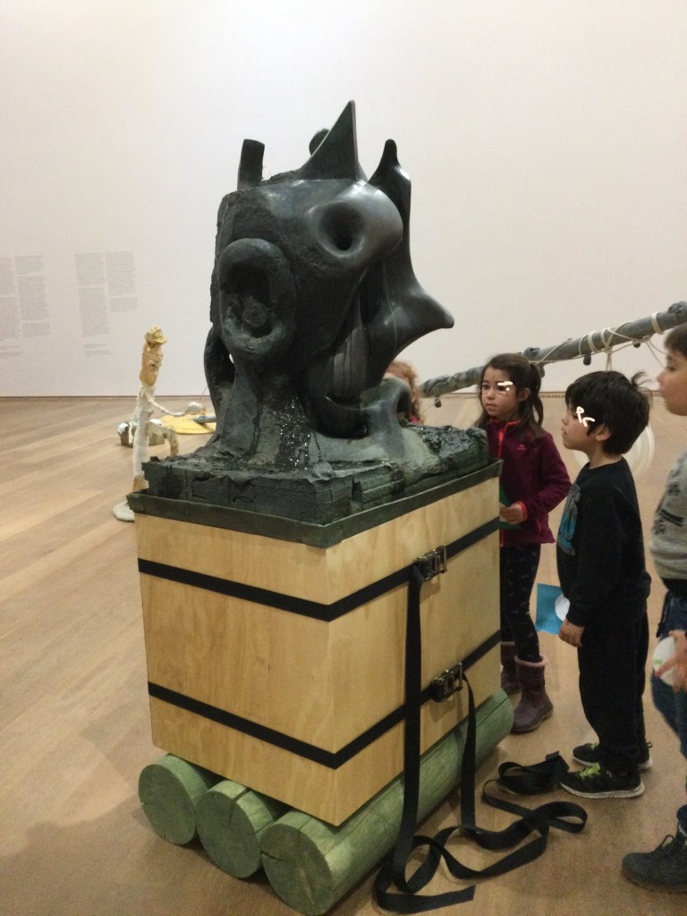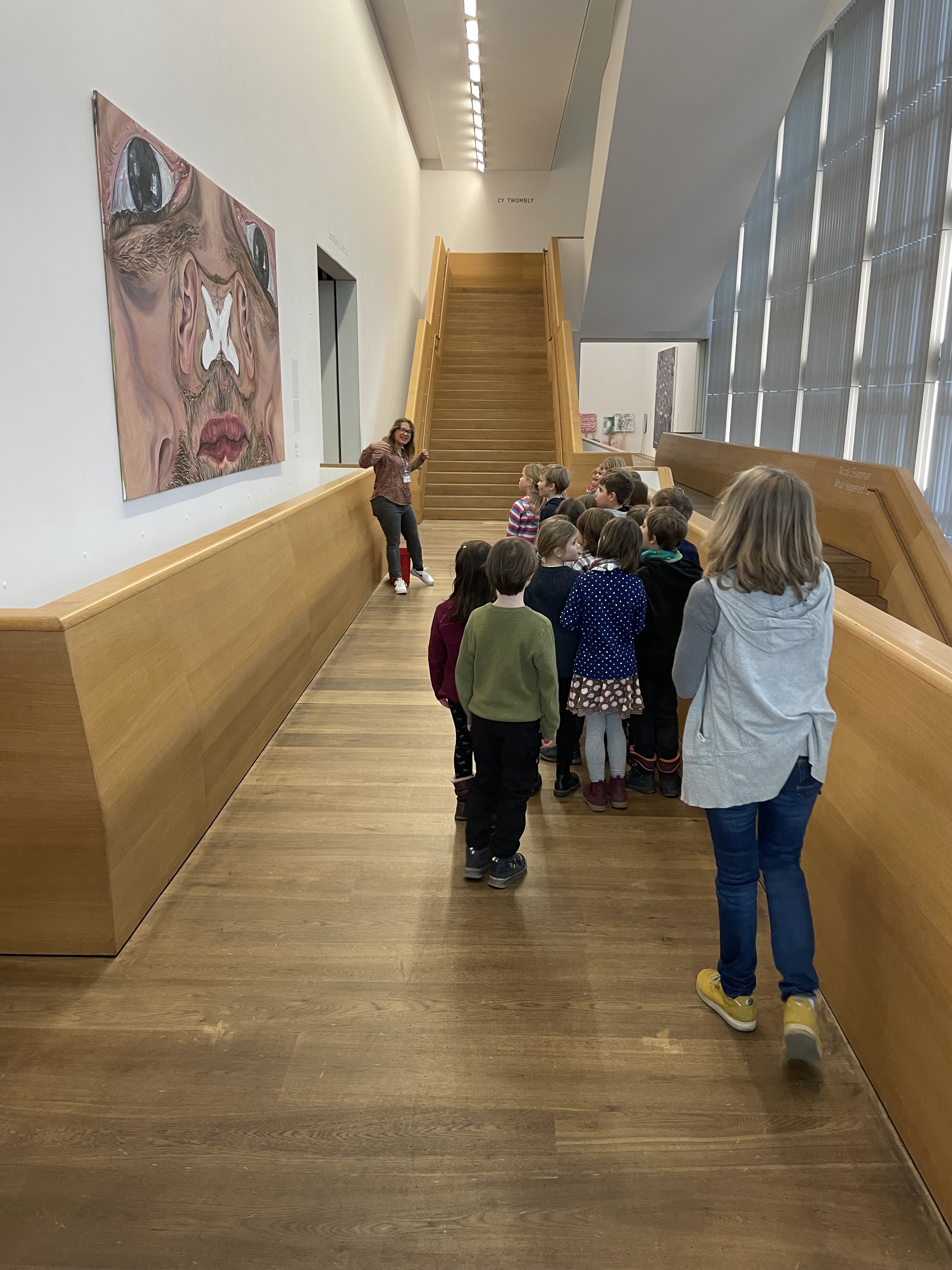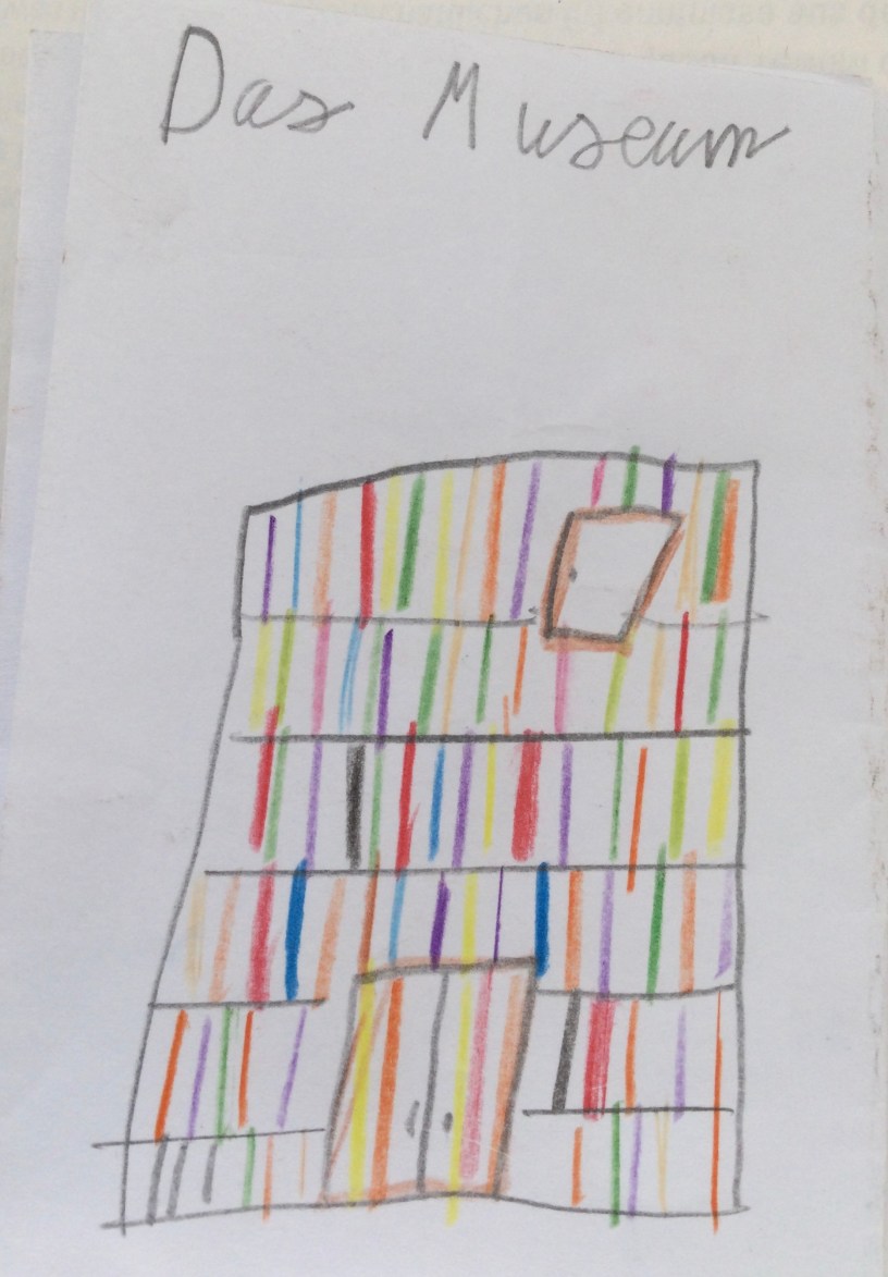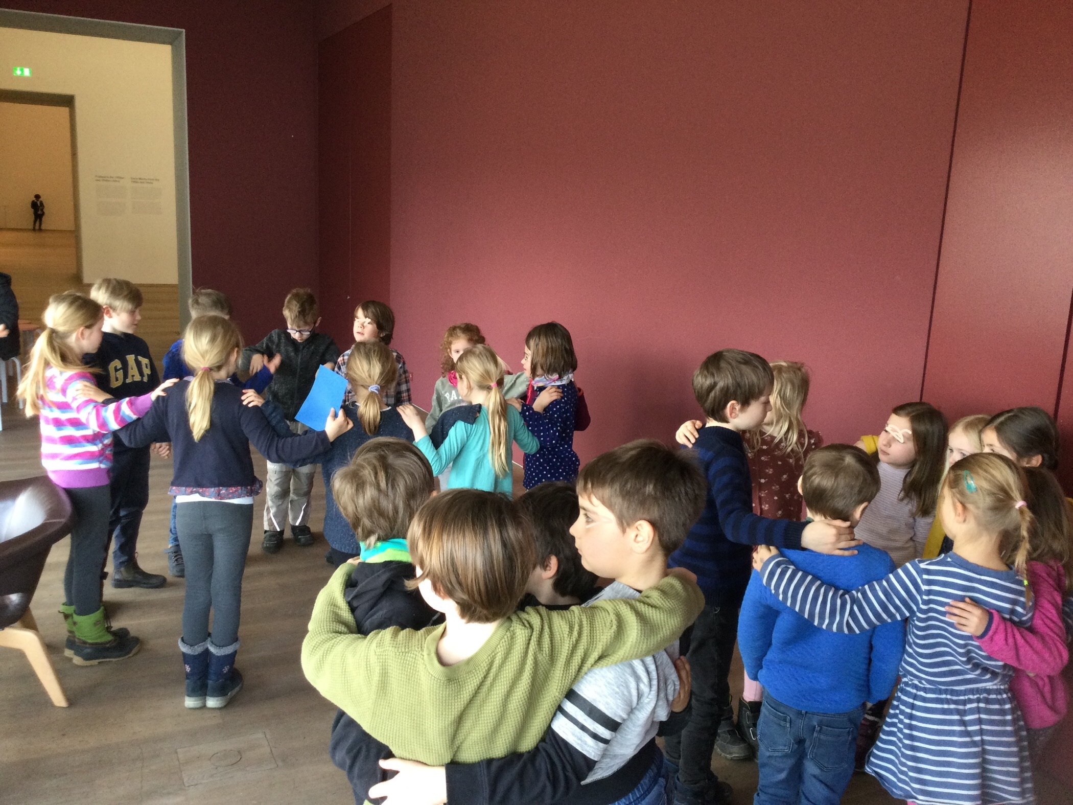 Wir entdecken Skulpturen, die vor dem Museum stehen. Eine Gruppe, sie gehören zusammen wie wir.