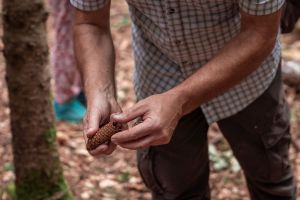 Tannenzapfen werden am Baum langsam zerlegt und eigentlich findet man sie nie ganz am Boden.