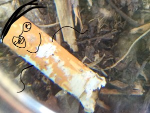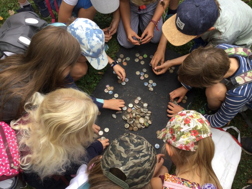 Wir haben auch noch eine Gaskartusche , am meisten haben wir kleine Plastikstückchen gefunden. Am Bahnhof haben wir eine Unterhose und einen Turnschuh gefunden. Zigarettenkippen waren es sehr viele und fast 200 Kronkorken.