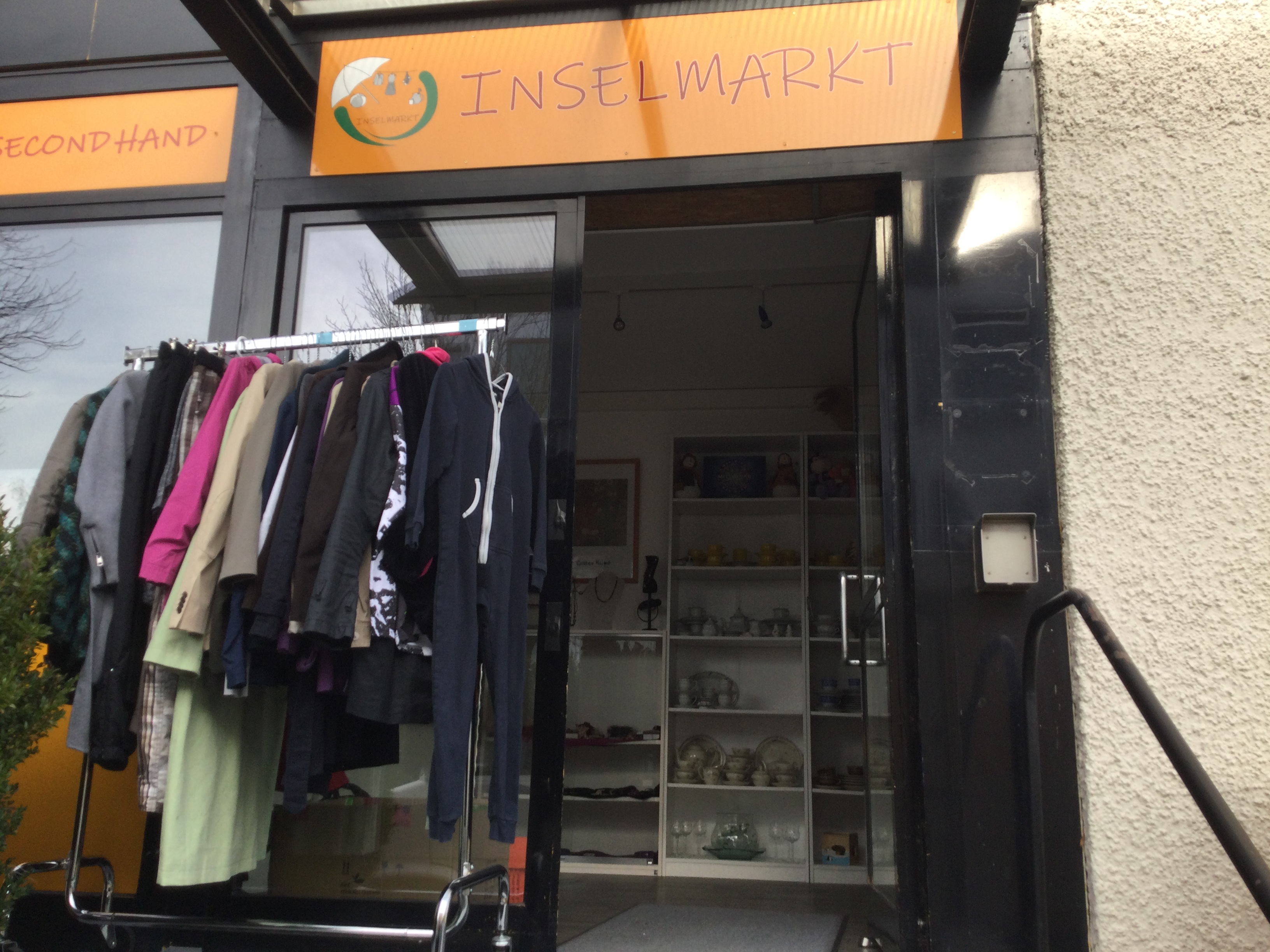Auf dem Rückweg gingen wir am Inselmarkt vorbei: Hier kann jeder Sachen vorbeibringen, die er oder sie nicht mehr braucht. Jeder kann hier gebrauchte Sachen für wenig Geld einkaufen.