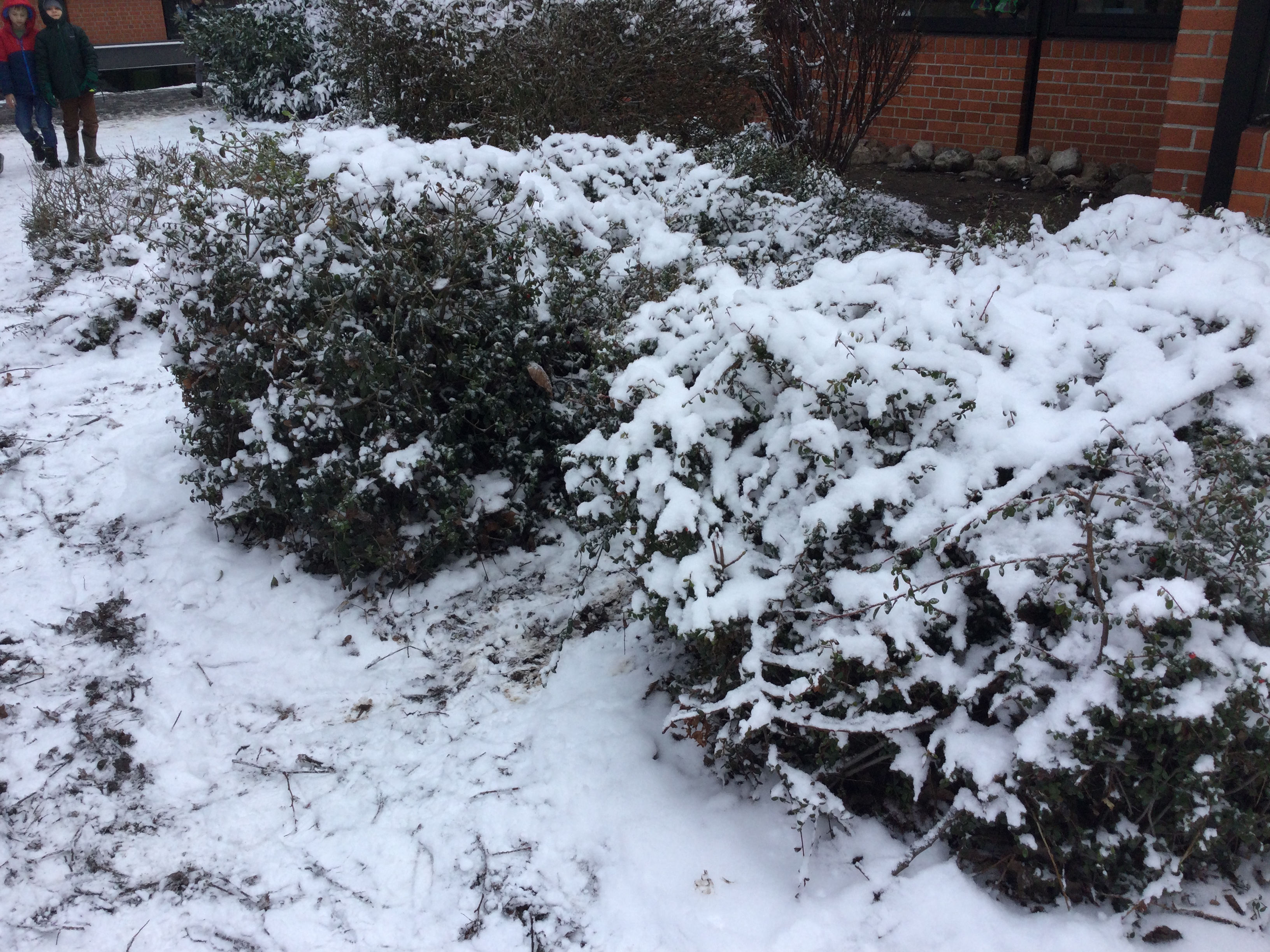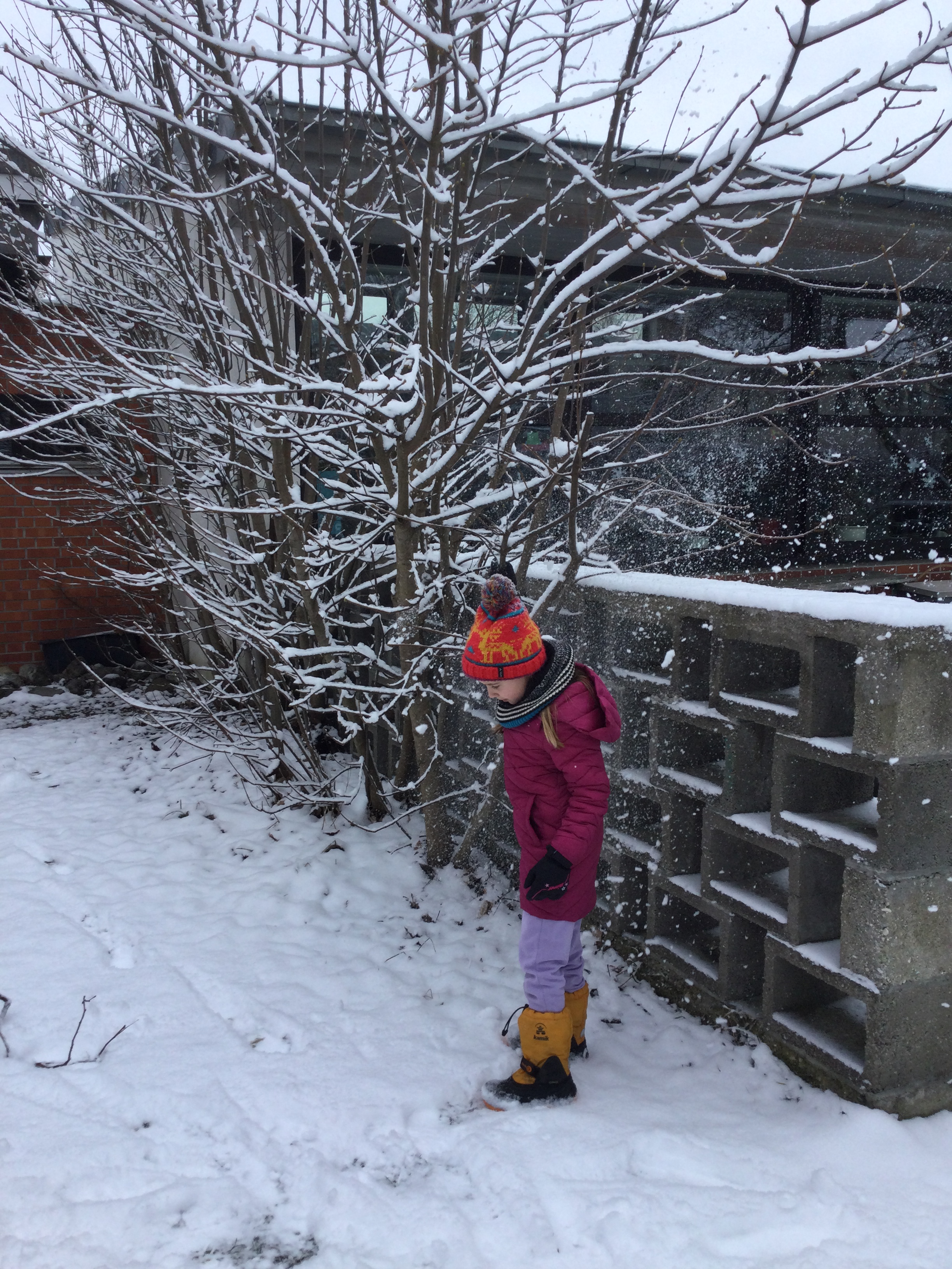 Ich schüttele den Schnee vom Busch.