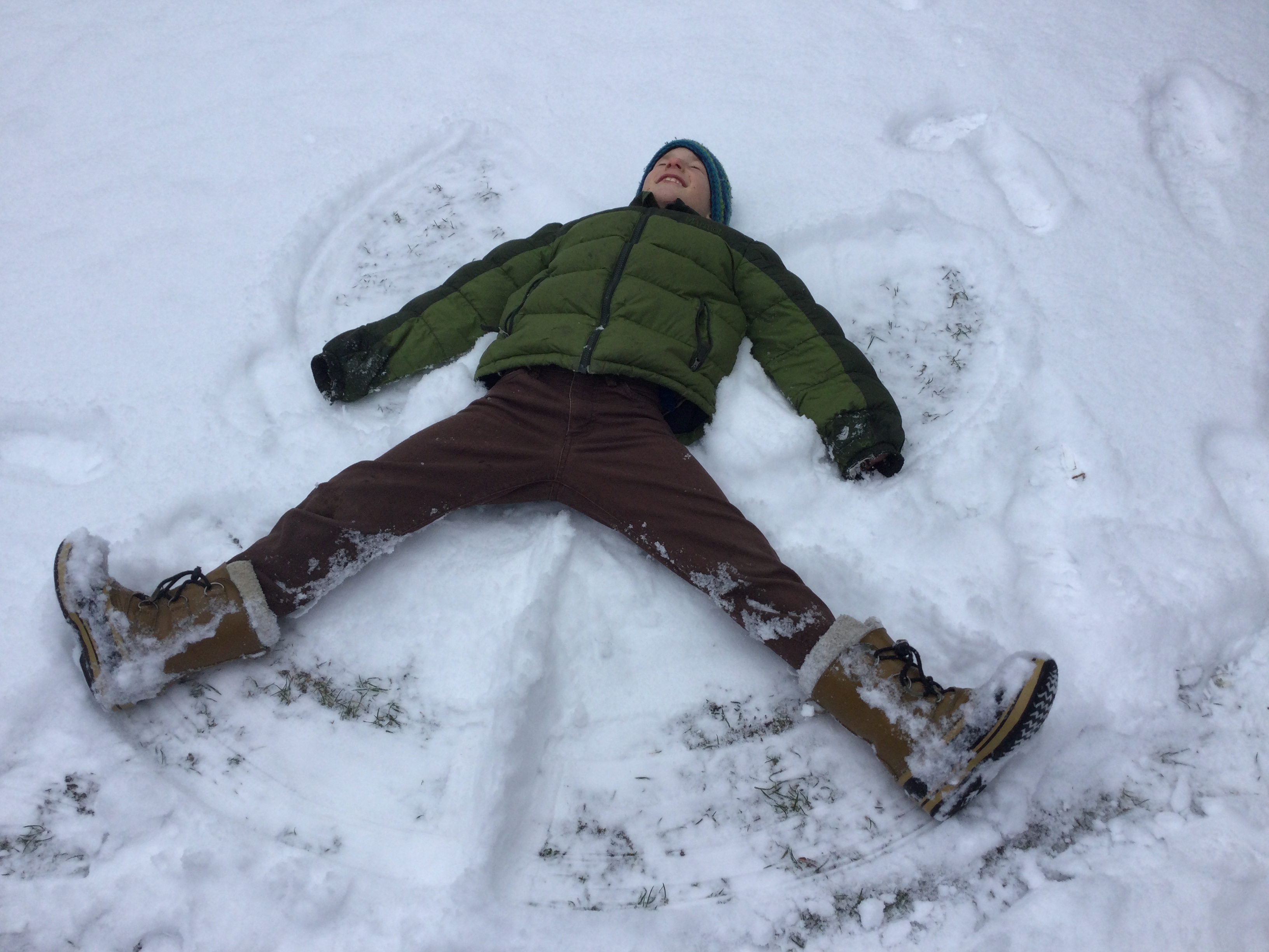 Der Winter ist schön. Wir haben Schnee im Schnee getrampelt. Ich habe im frisch gefallenen Schnee einen Schneeengel gemacht.