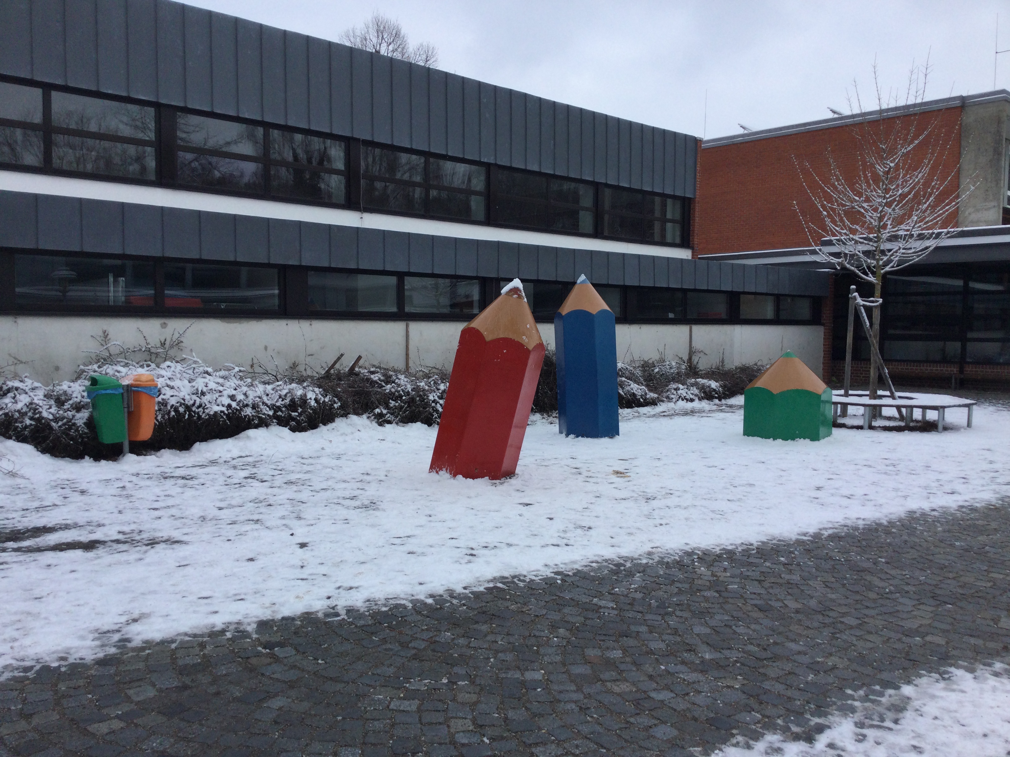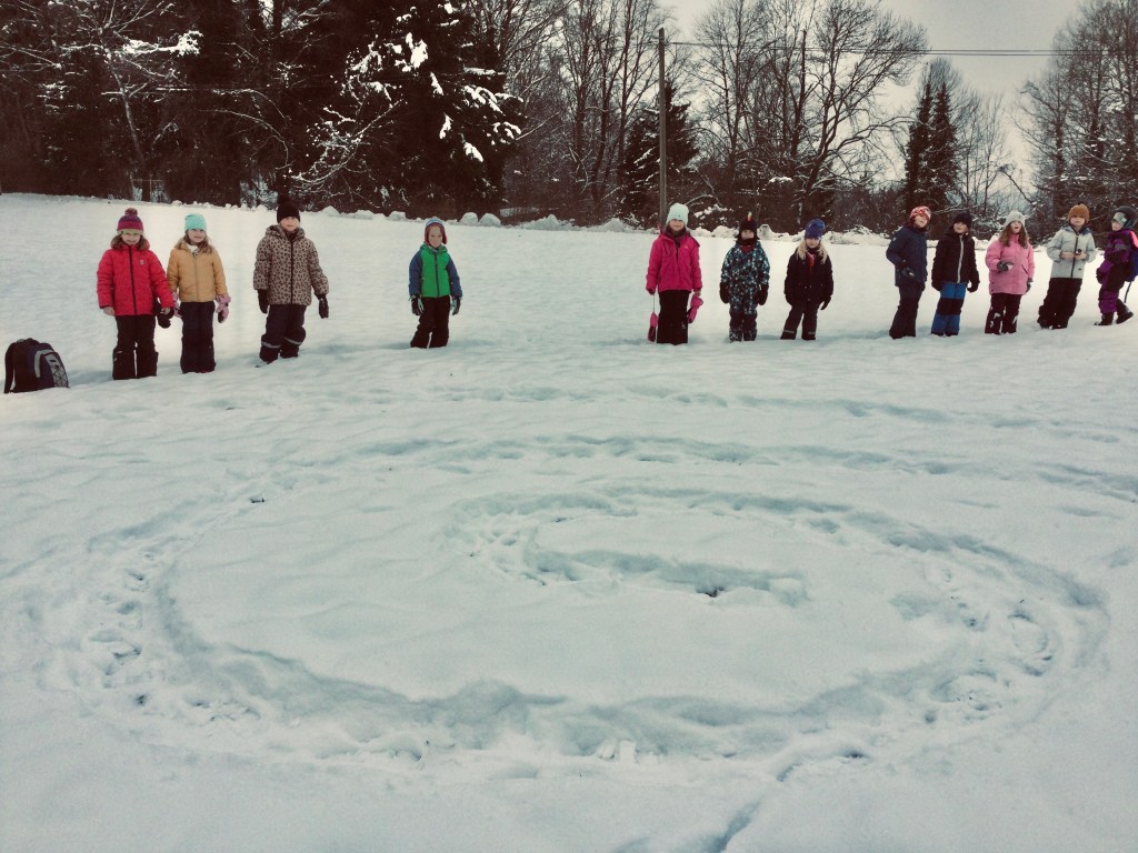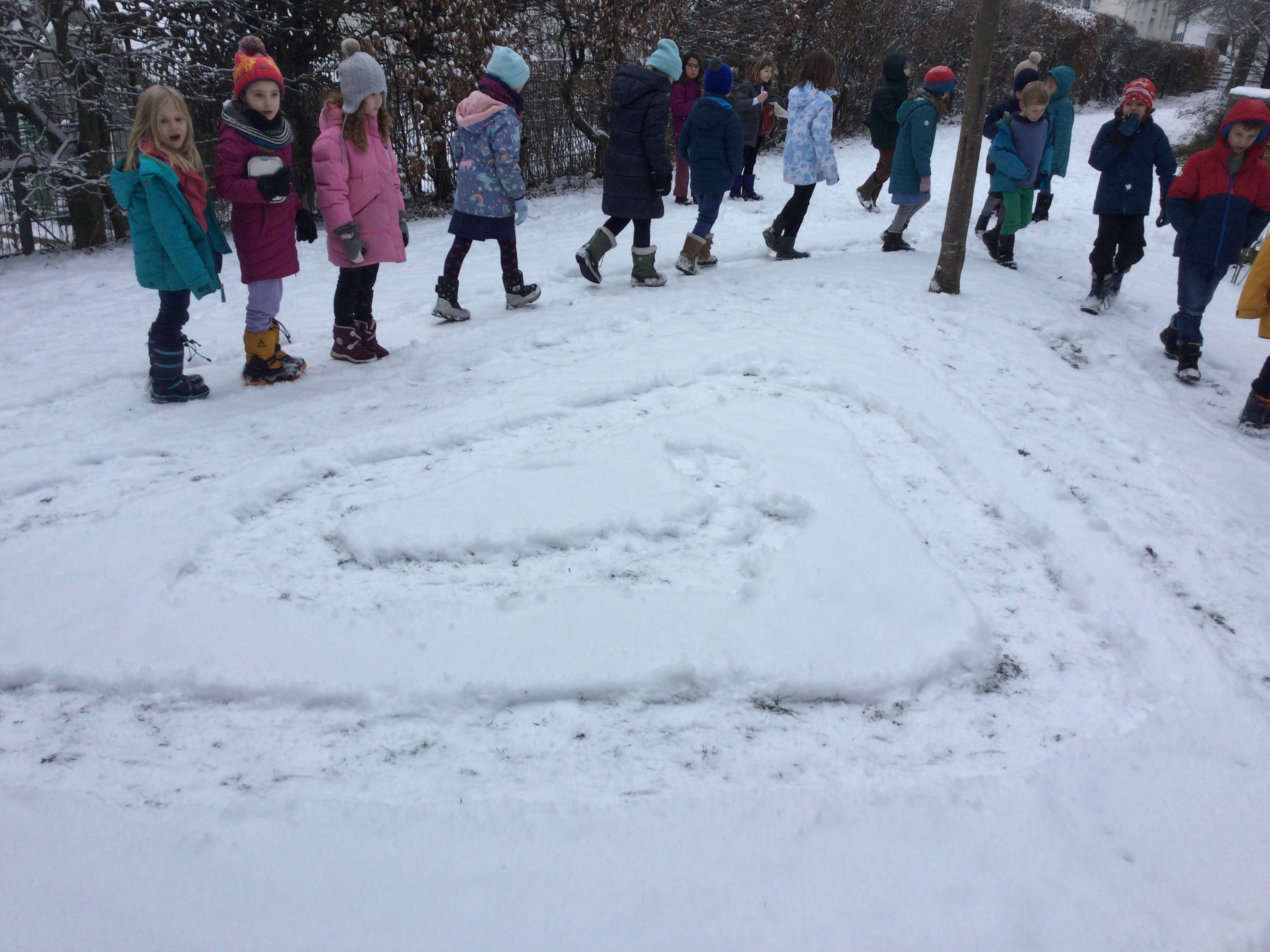 Ich habe meine Lehrerin mit einem Schneeball abgeworfen, obwohl es verboten ist,Schneebälle zu werfen. Wir haben eine Schneeschnecke gestapft.