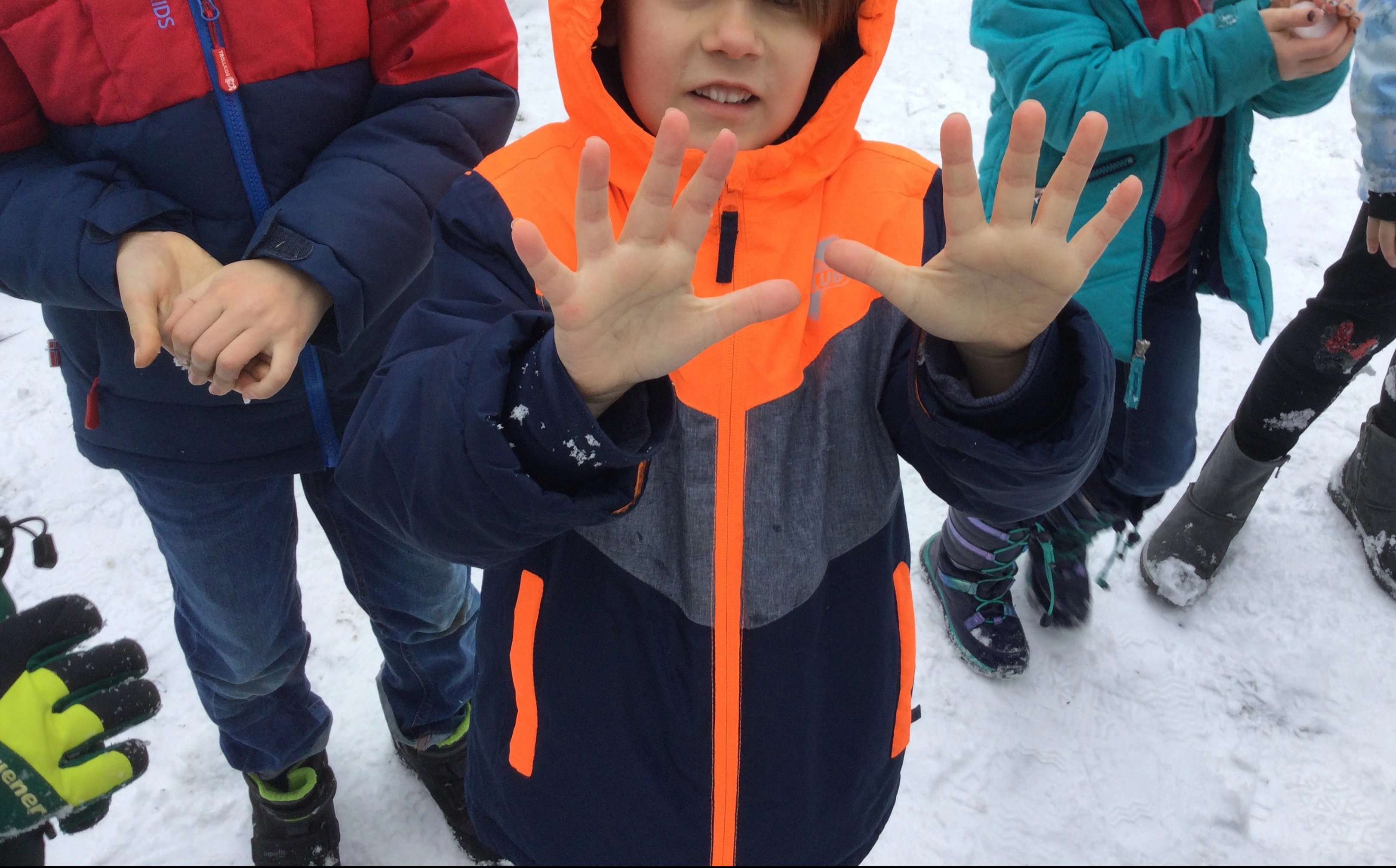 Ich finde es schön, dass es geschneit hat. Einen Schneeball bauen.