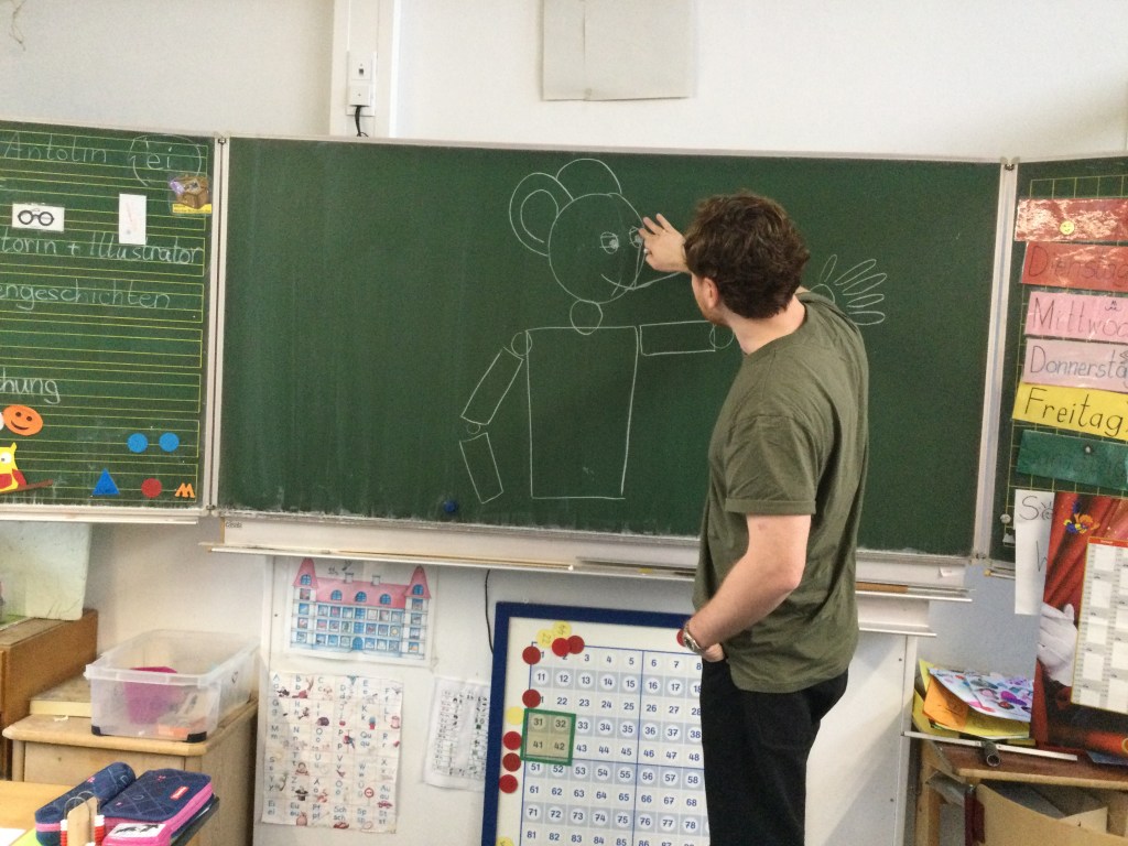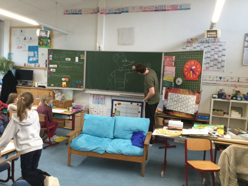Frau Kiesgen und Herr Kneffel haben uns vorgelesen und uns Bilder aus einem Wummelbuch vorgestellt.
