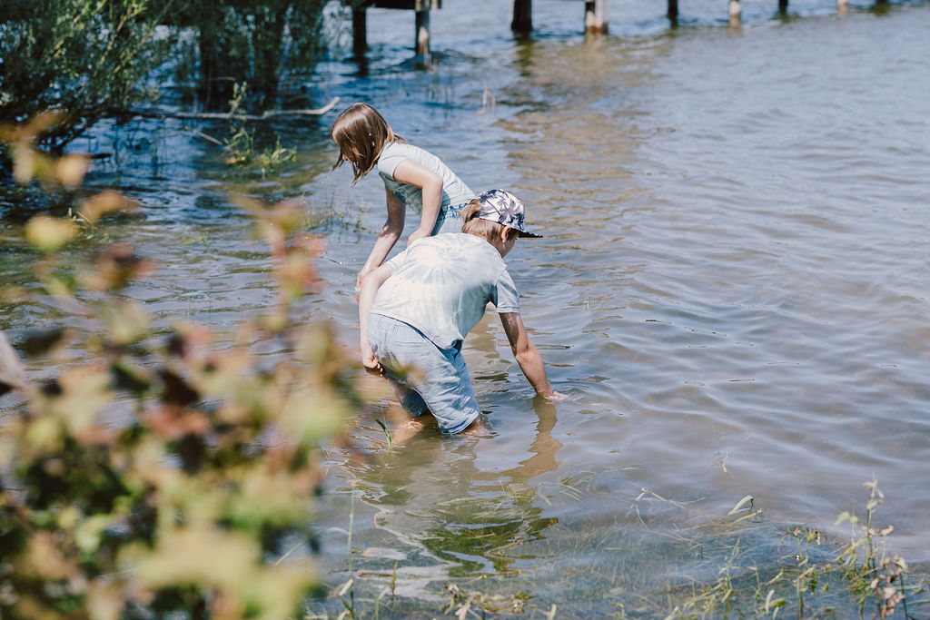 Es gibt eine Flachwasserzone mit vielen Tieren, die sich hier verstecken und das Ufer zum Erforschen