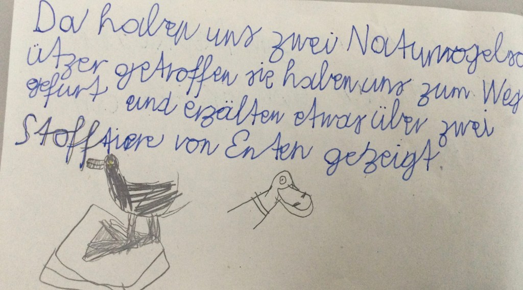Wir haben eine Stockente und eine Reiherente angeguckt. Männliche Enten nennt man Erpel.