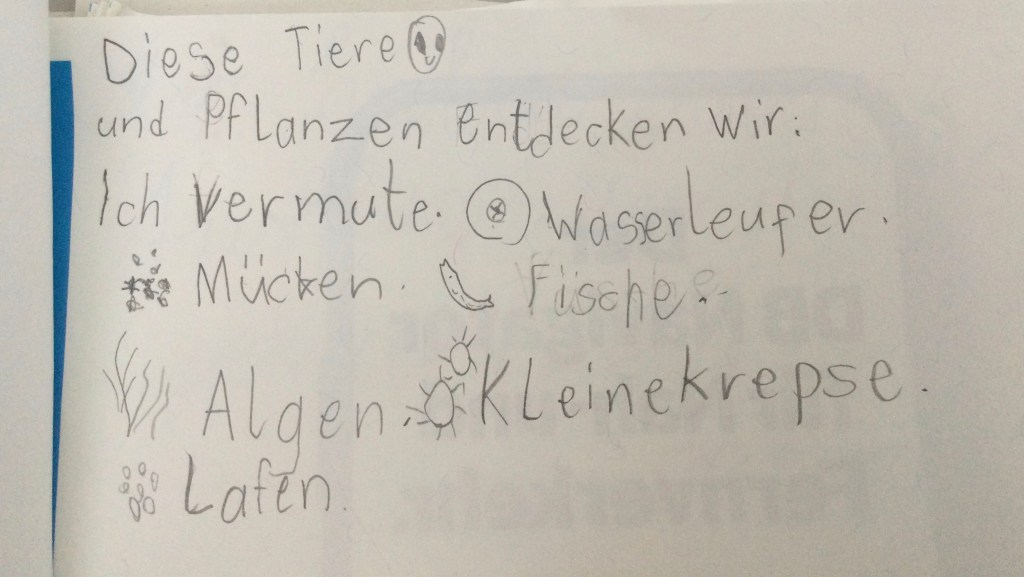 Wir haben keine Kaulquappen gesehen, weil sie schon alle Kröten oder Frösche sind.