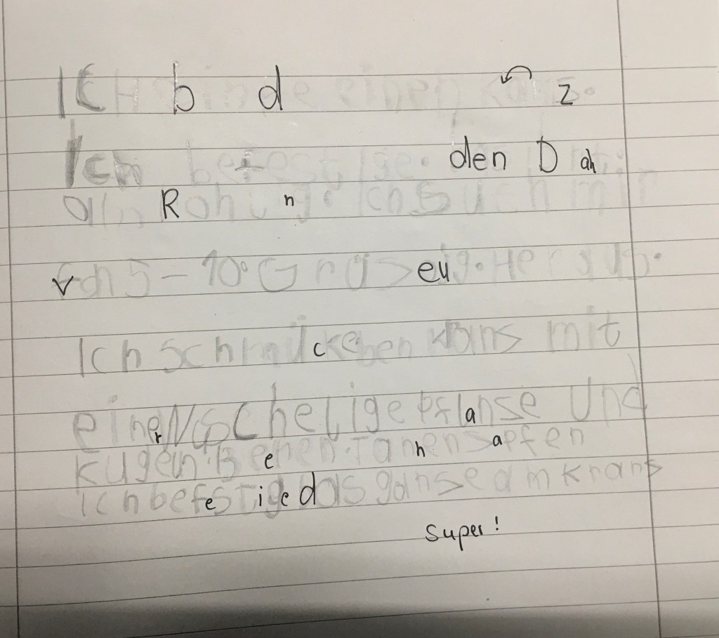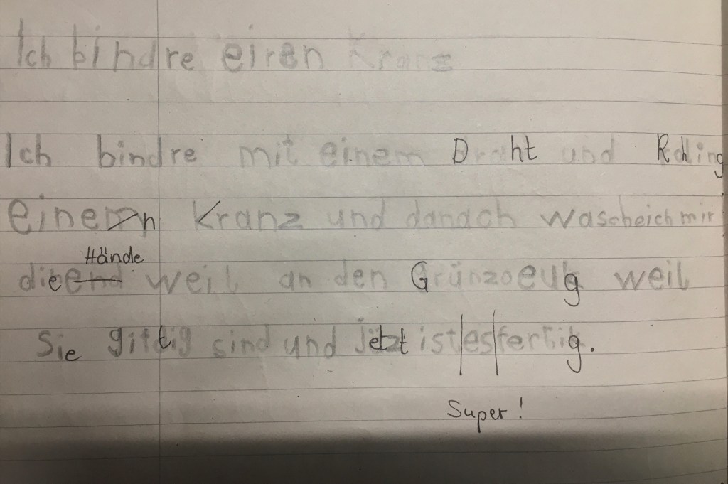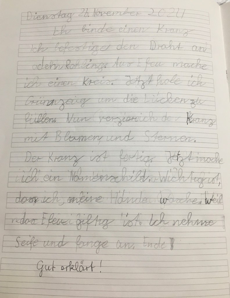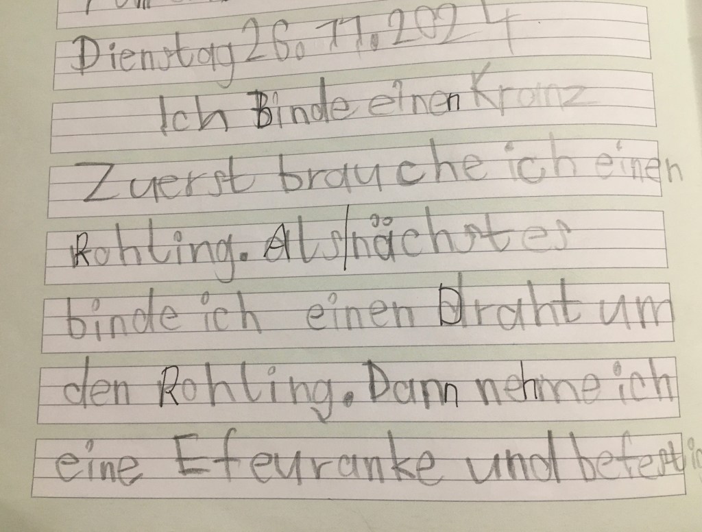 Umwelt Wir binden Kränze für die Adventszeit Datum: 2. Dezember 2024Autor: Ammerseeklasse 0 Kommentare Wir verwenden Hortensien, Tannen und Thujenzweige und Zapfen.Jetzt müssen wir uns Grünzeug aussuchen.Danach dürfen wir uns zum Beispiel Blumen oder Beeren aussuchen. Hier durften wir Grünzeug nehmen.Hier durften wir basteln.Dieser Kranz ist schön.Dieser Kranz ist besonders schön.Hier waren die Blumen.Zum Verzieren verwenden wir Früchteund auch getrocknete Blumen.So wird der Draht um den Rohling gewickelt.Alles wird mit Draht befestigt.So sehen die fertigen die Kränze aus.Jeder hat noch ein Namensschild geschrieben. Danach müssen alle Hände waschen, weil Efeu und andere Zweige sind giftig. Was haben wir gemacht? Eine Vorgangsbeschreibung: Hier ein Tipp für die Umwelt! EfeuwaschmittelHerunterladen Teilen mit: Klicke, um auf X zu teilen (Wird in neuem Fenster geöffnet) X Klick, um auf Facebook zu teilen (Wird in neuem Fenster geöffnet) Facebook Gefällt mir Wird geladen …