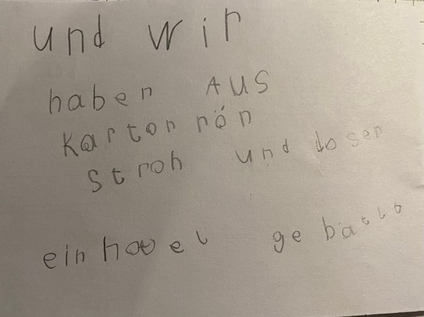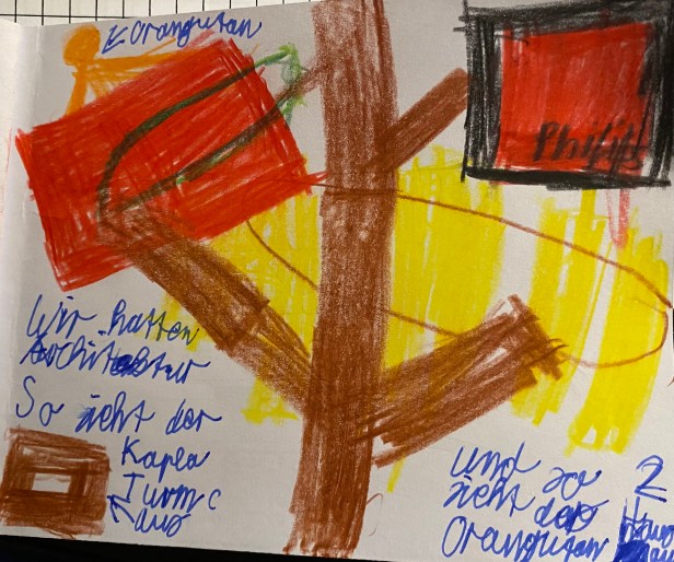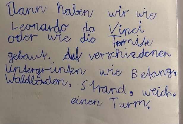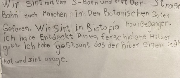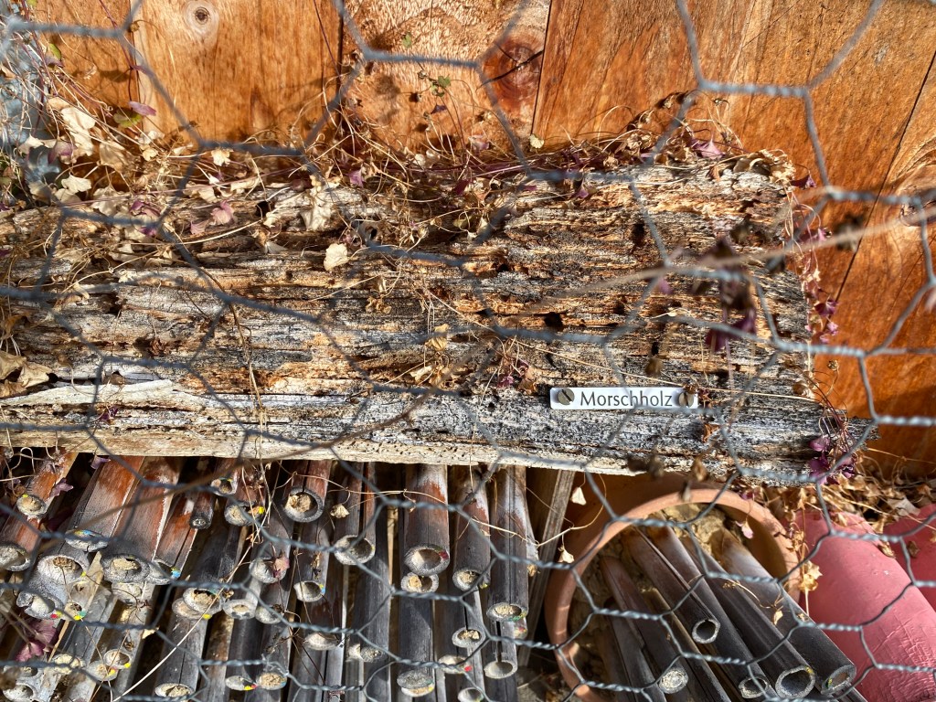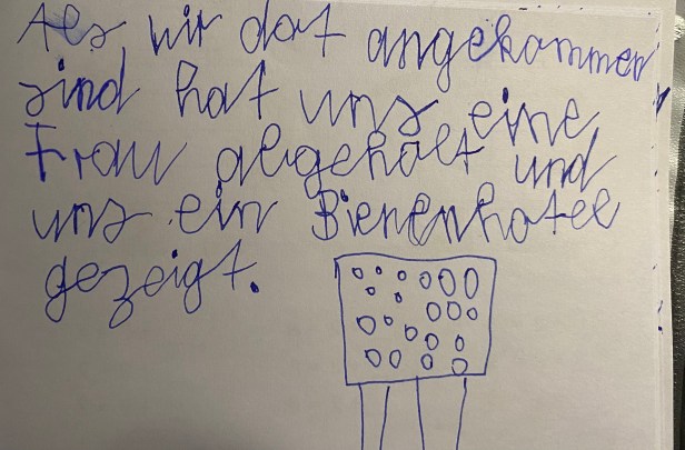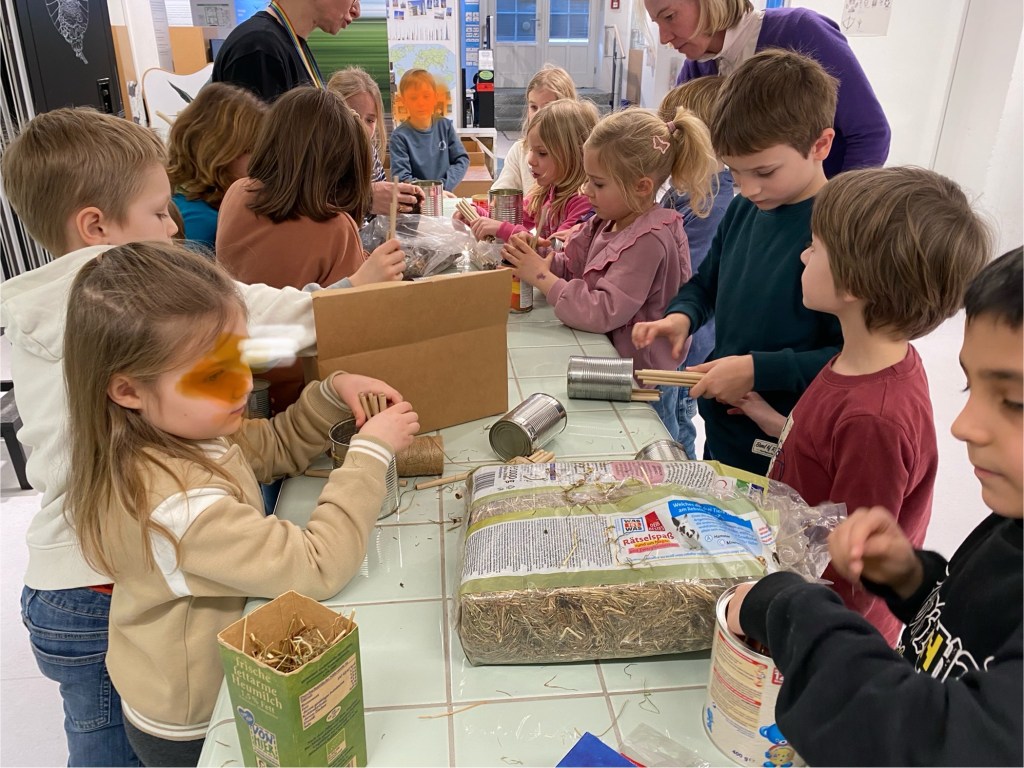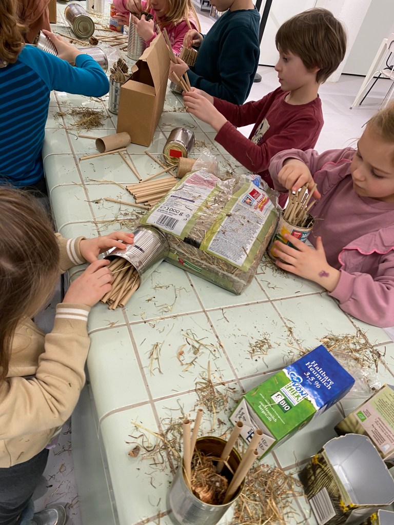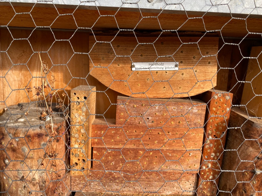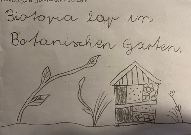 Wir waren im Botanischen Garten. In der Stadt ist es wichtig, Plätze für die Insekten zu bauen, da dort viel Beton, Glas und Asphalt ist und alles aufgeräumt wird.