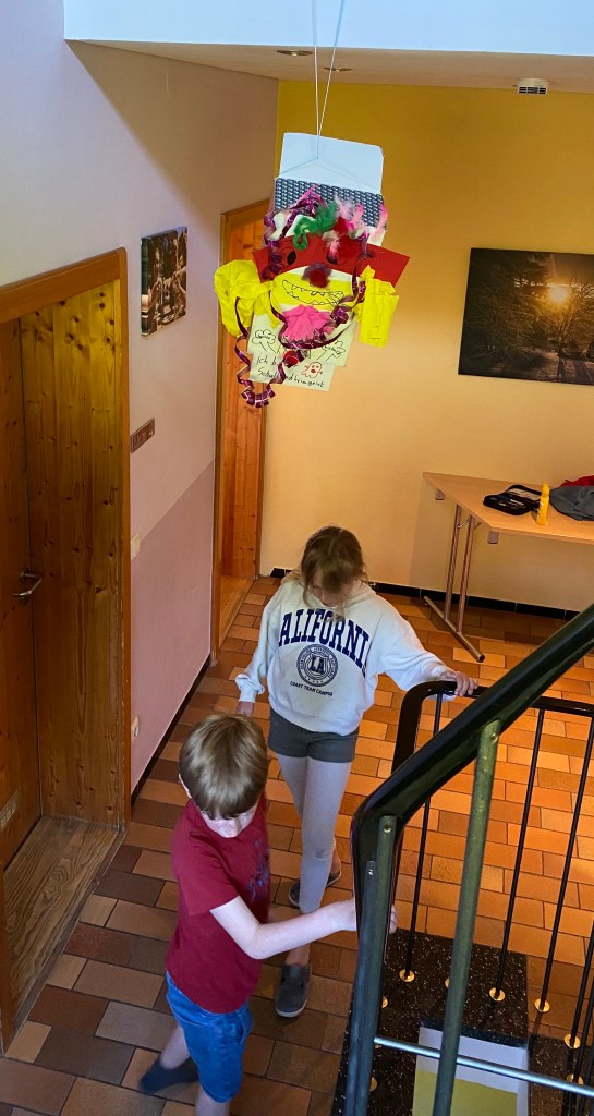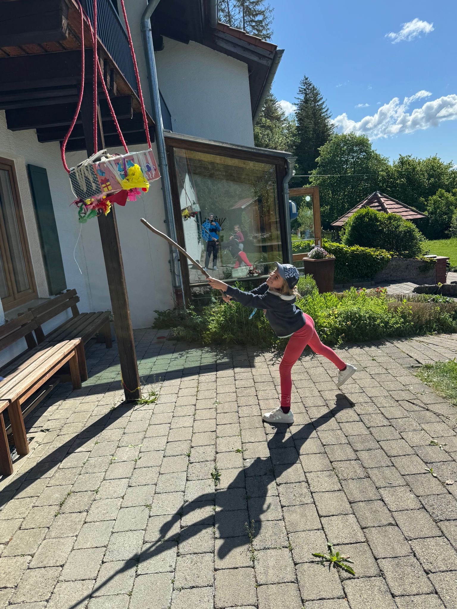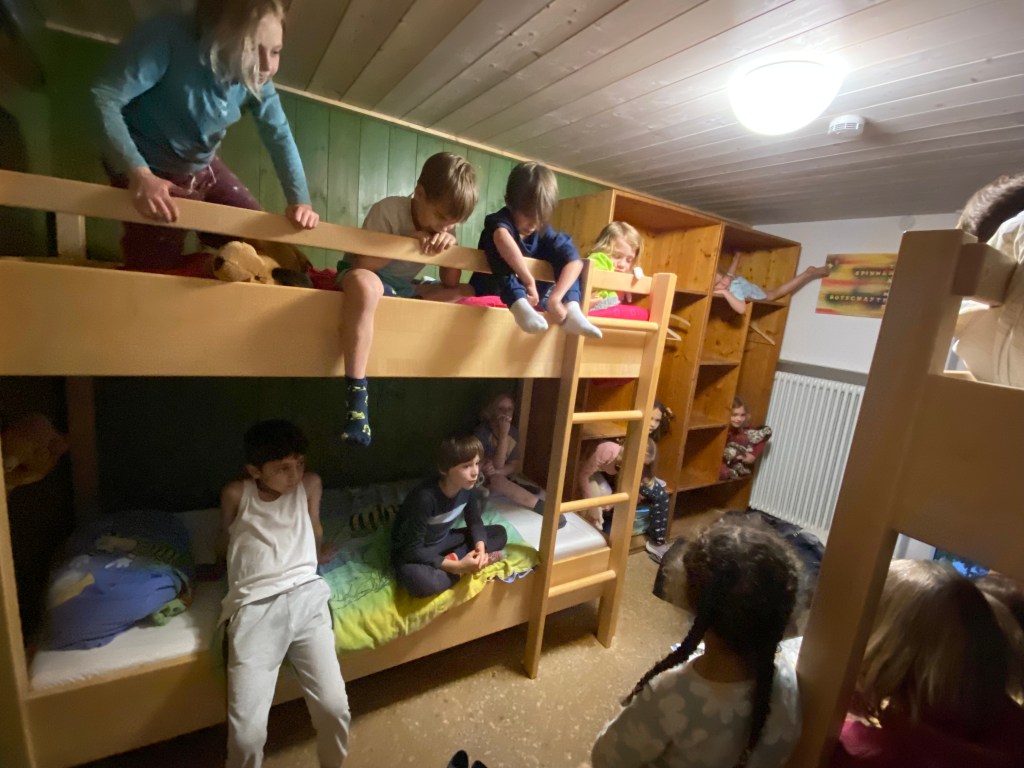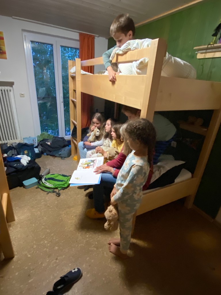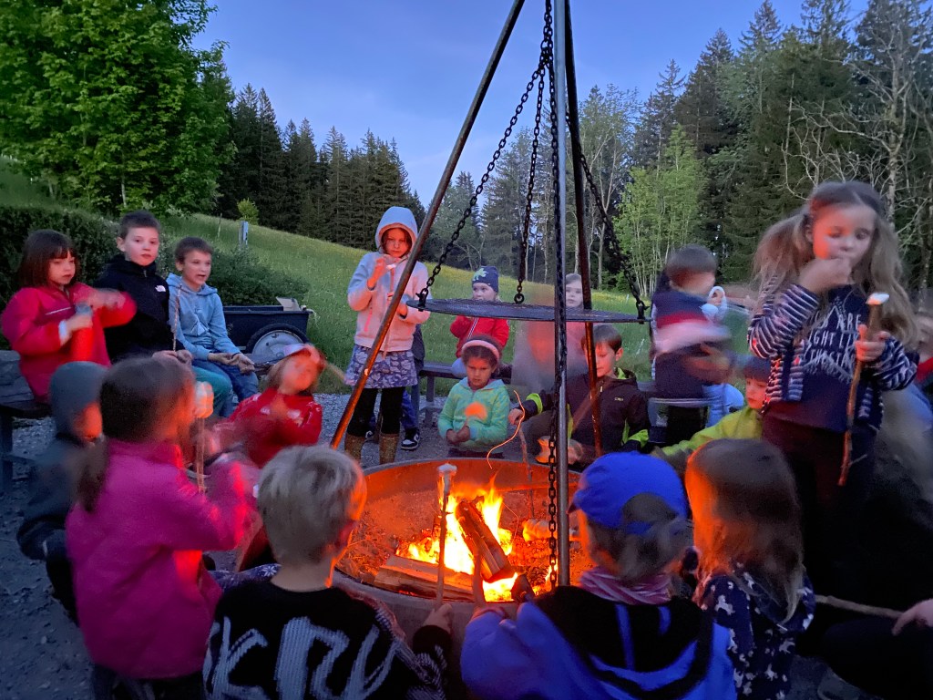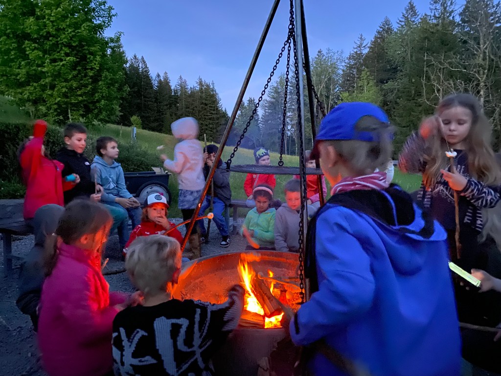 Am Mittwoch haben wir am Abend ein Lagerfeuer gemacht mit Marshmallows und Stockbrot. Wir haben auch viel gesungen und unser Stockbrot gegessen. Beim Stockbrot musste man den Teig lang ziehen und um den Stock wickeln und dann übers Feuer halten. Danach sind manche schon ins Bett gegangen. Aber manche auch nicht. Wir haben die Geschichte von der kleinen Hexe mit dem kleinen Koffer für große Hexen vorgelesen. Wir haben die kleine Hexe am Himmel entdeckt, als sie vorbei geflogen ist. Aber eigentlich war es nur ein Flugzeug. Danach sind alle ins Bett gegangen.