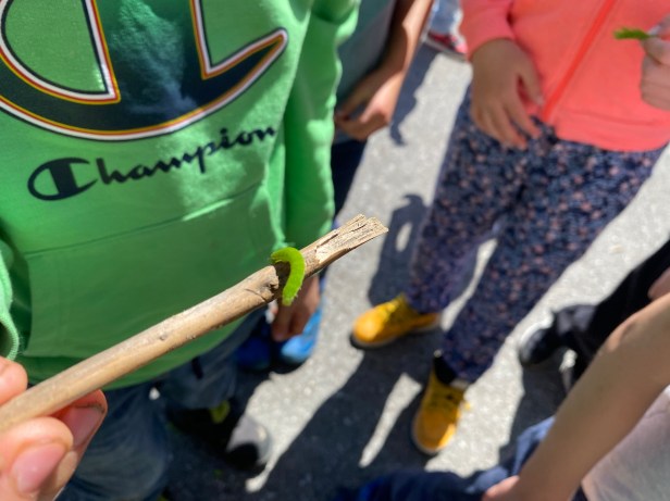 Auf einem Waldspaziergang sind wir auf eine Wiese gekommen. Dort haben wir Spiele gemacht. Wir haben Schmetterlinge gespielt und wir sind immer zusammen zu den Blumen geflogen. Die Wiesen wurden gemäht und plötzlich waren nicht mehr die richtigen Blumen für die Schmetterlinge da. Also konnten wir nichts mehr fressen.