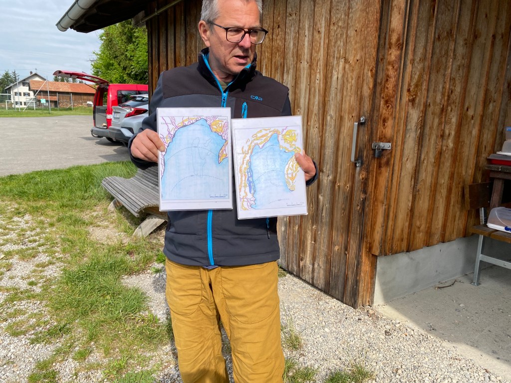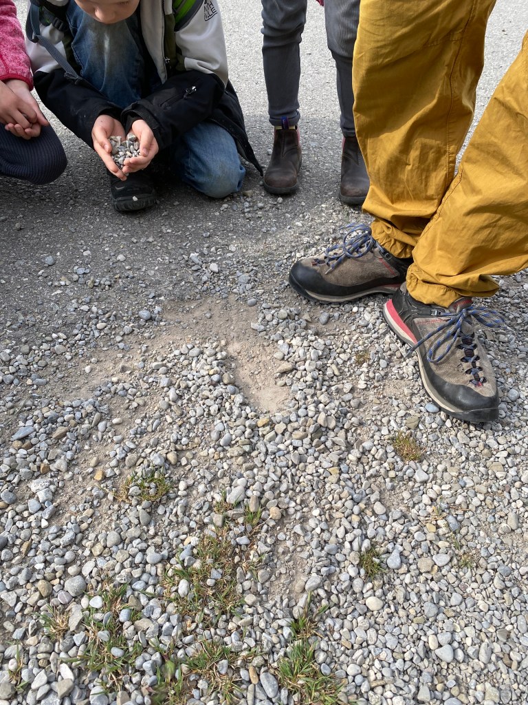 Vor 100.000 Jahren in der Eiszeit war ein großer Gletscher im unserem Gebiet. Er wurde immer kleiner und der Gletscher hat große Steine mit sich gezogen. Aus dem geschmolzenen Eis wurde der Ammersee und Herr Blacek hat die ganze Geschichte erzählt. Dadurch, dass die großen Steine im Eis gebacken waren, wurden sie immer weiter am Boden entlang geschliffen, bis sie ganz rund waren und viel kleiner. Diese Steine findet man heute noch hier. Rechts und links vorm Gletscher entstanden. Große Hügel auf einem Hügel ist unser Schullandheim am Kienberg und auf einem ist Andechs am Ammersee.
