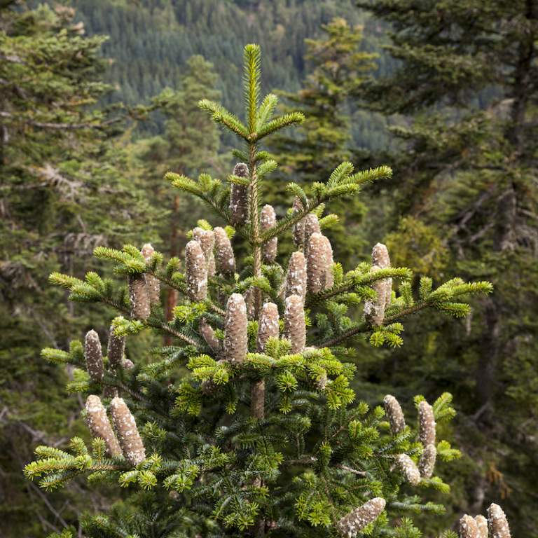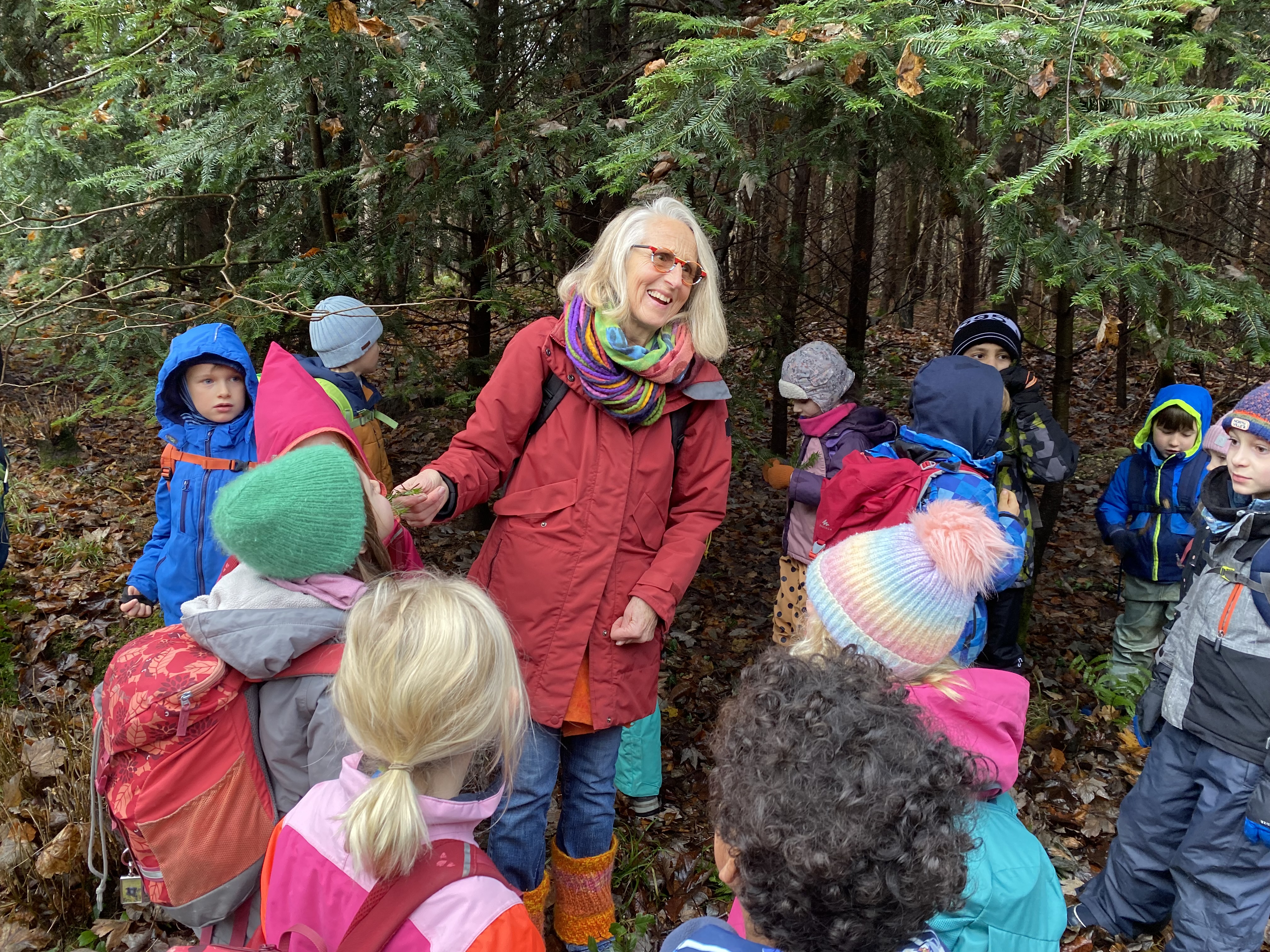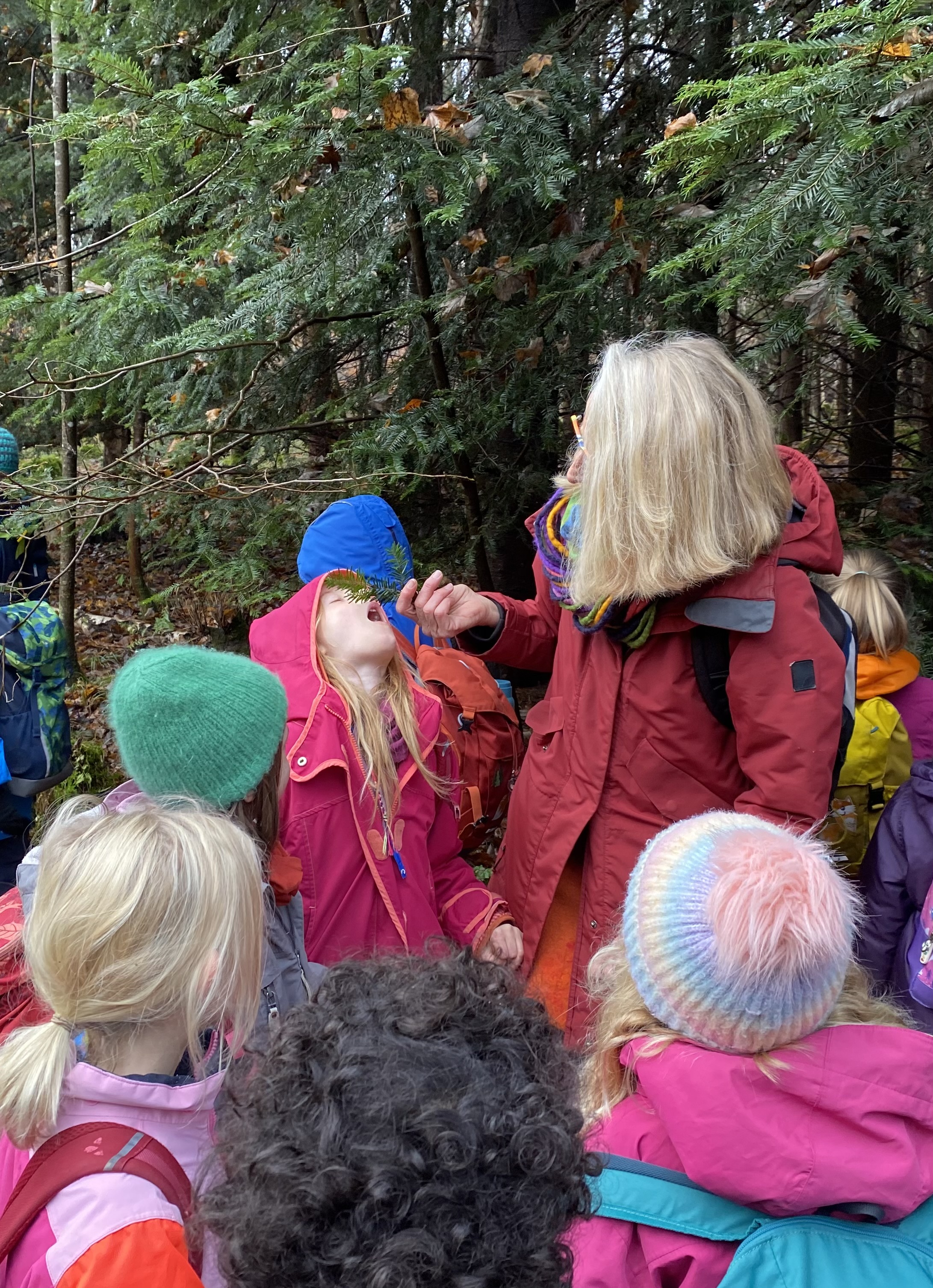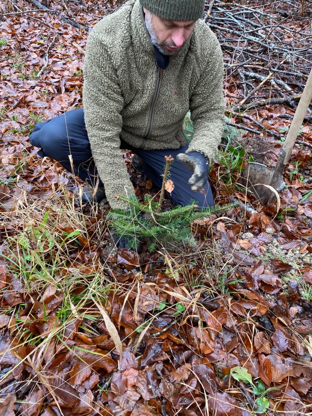 Rehe fressen lieber Tannen, denn die pieksen nicht. Die Nadeln schmecken uns auch gut. Es riecht wie Weihnachten. „Tannenzweigenduft“