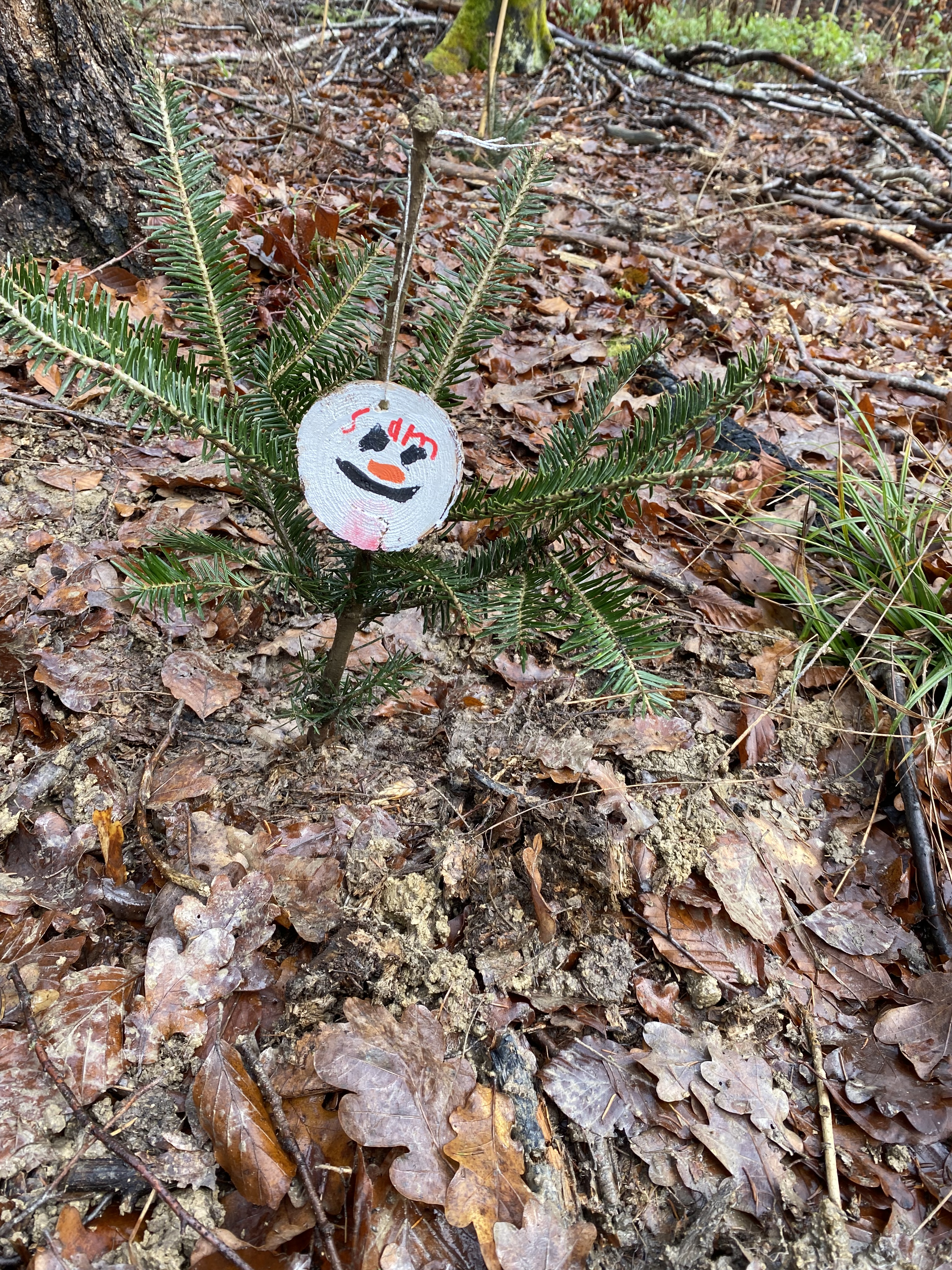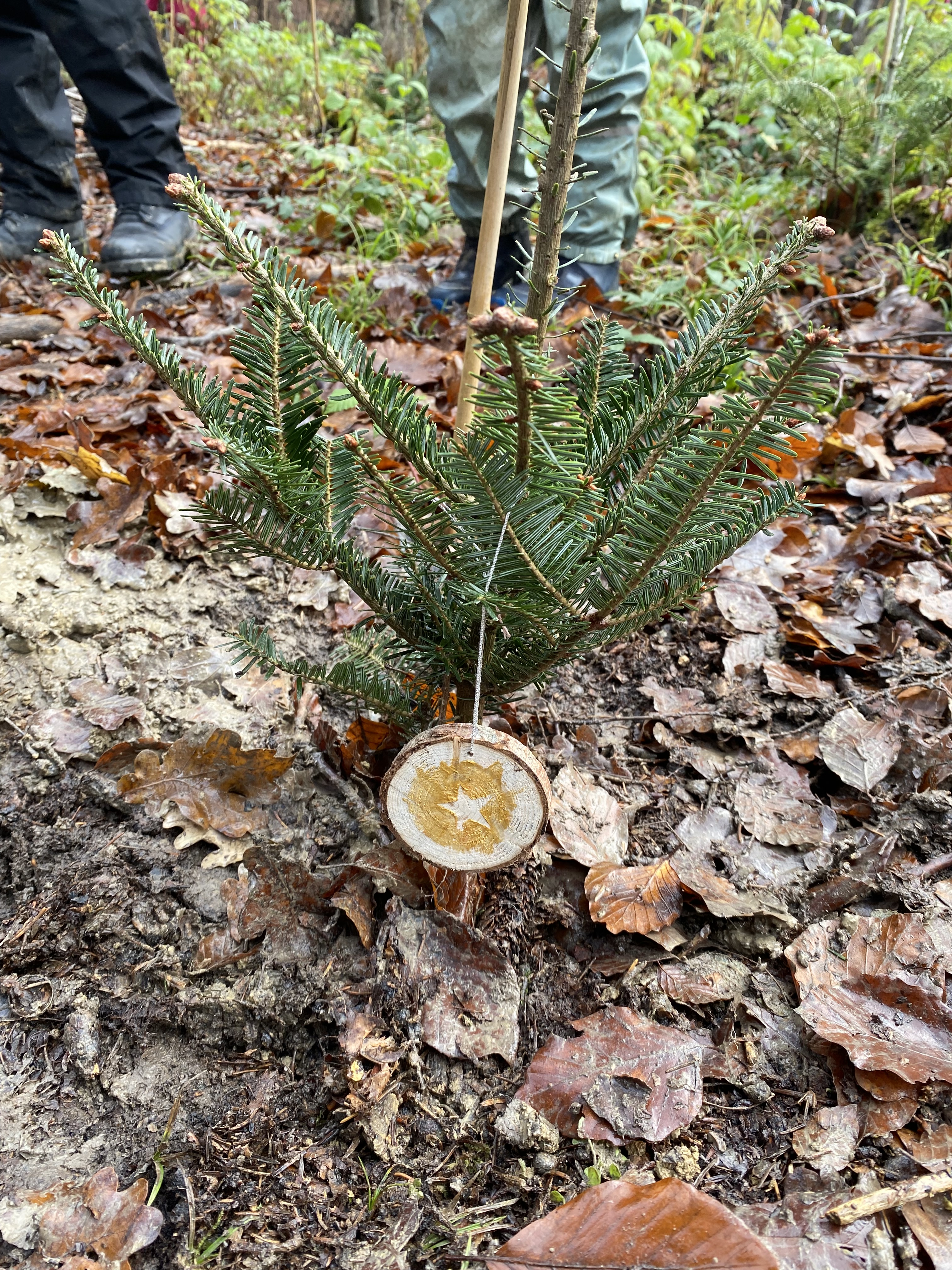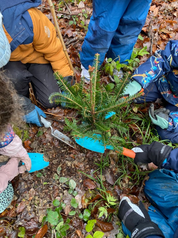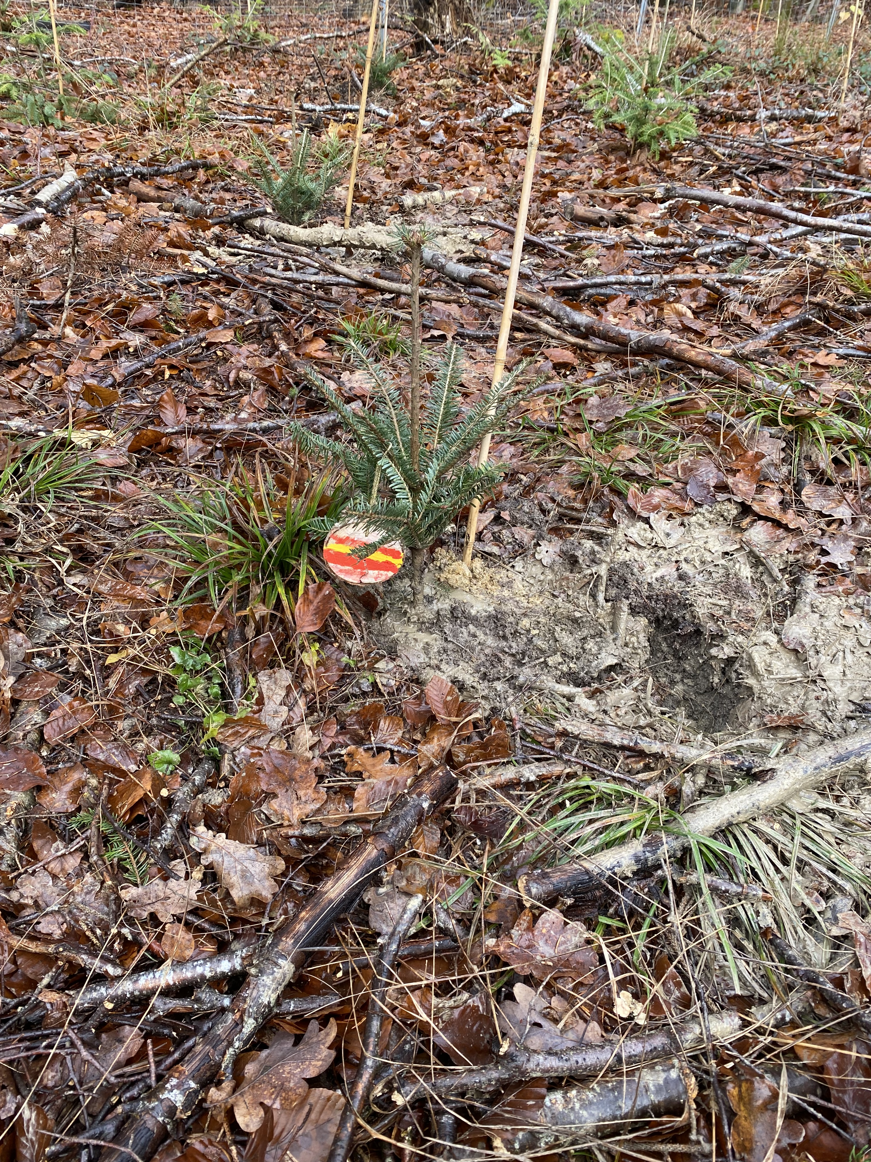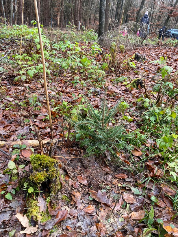 Schilder, damit wir unsere Bäume wiederfinden. Wo sind die wohl in 30 Jahren?
