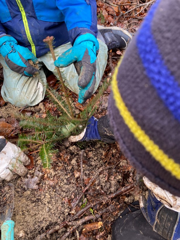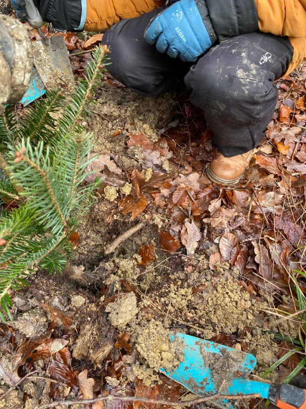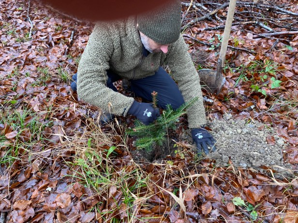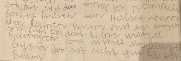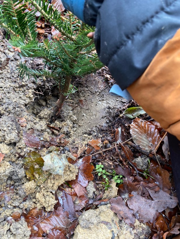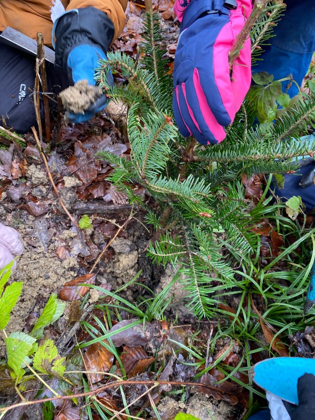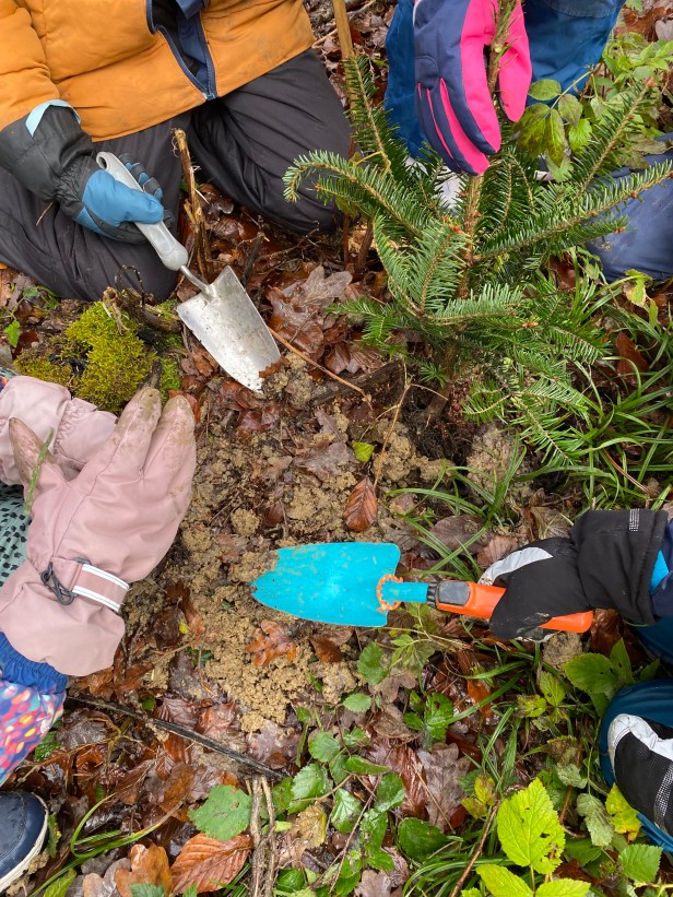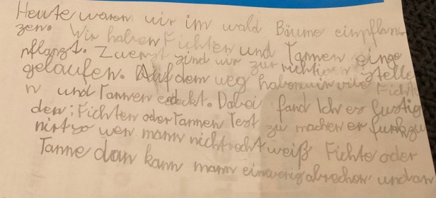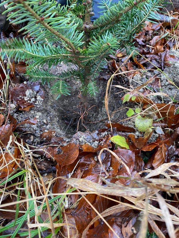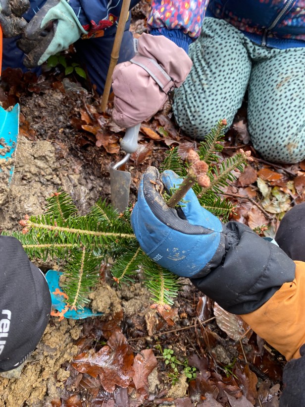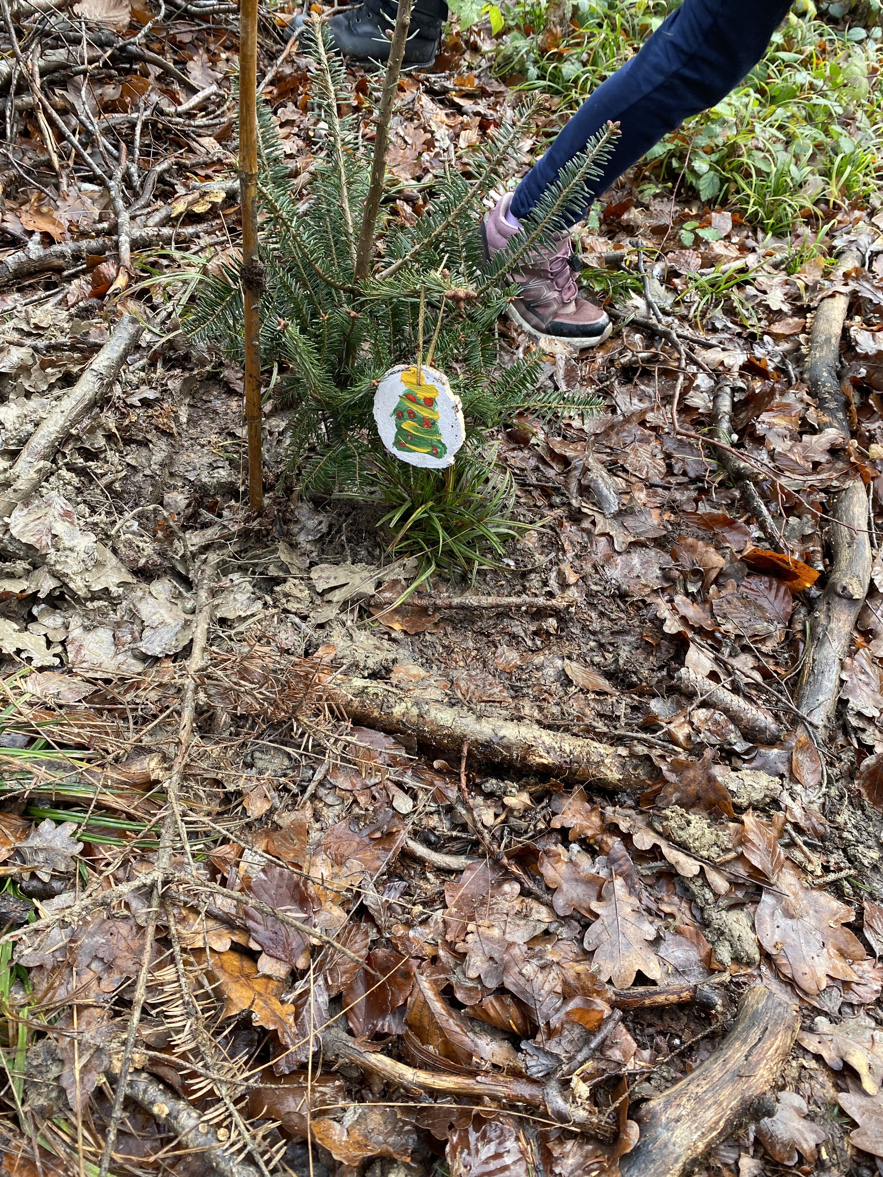 Schilder, damit wir unsere Bäume wiederfinden. Wo sind die wohl in 30 Jahren?