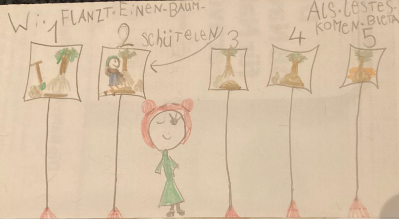 Hier sind die gestalteten Büchlein: Kinder pflanzen Bäume