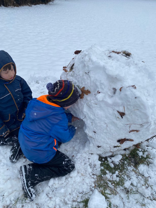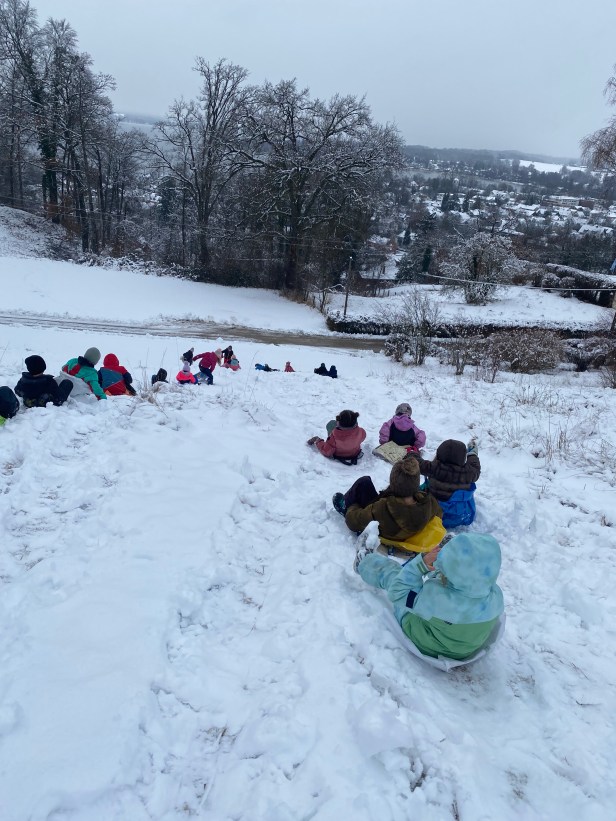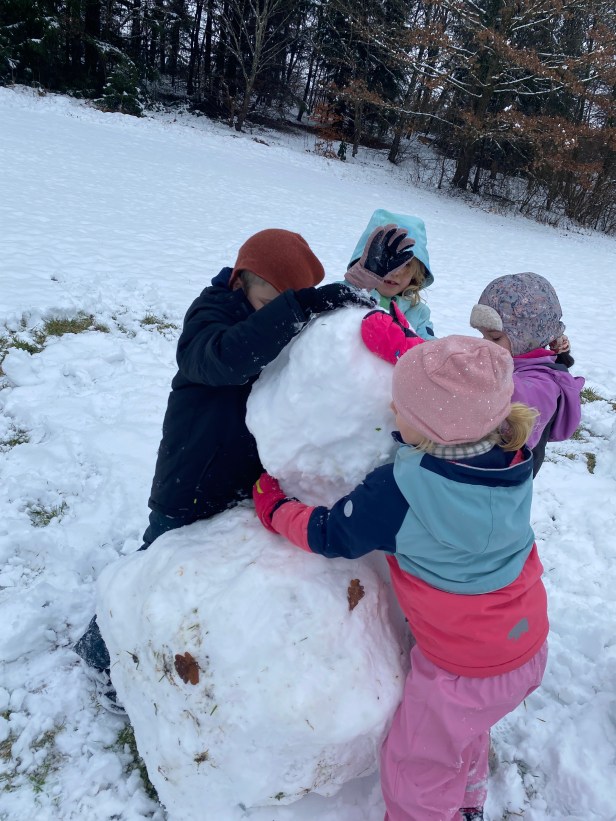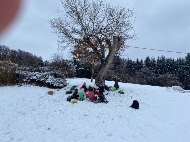 Es hat geschneit und wir wandern auf die Leitenhöhe über die Himmelsleiter: