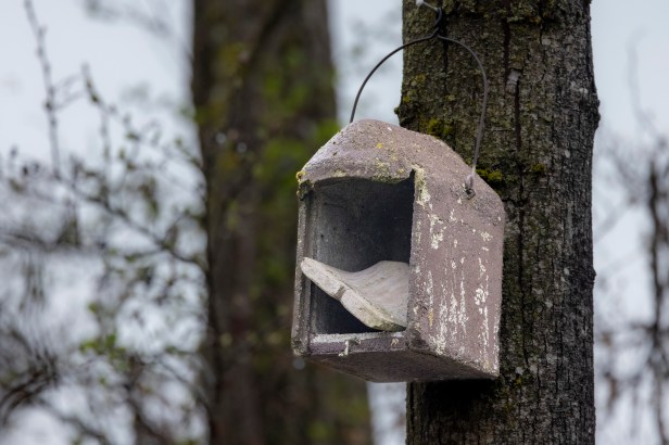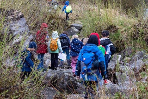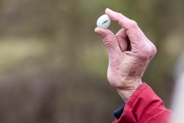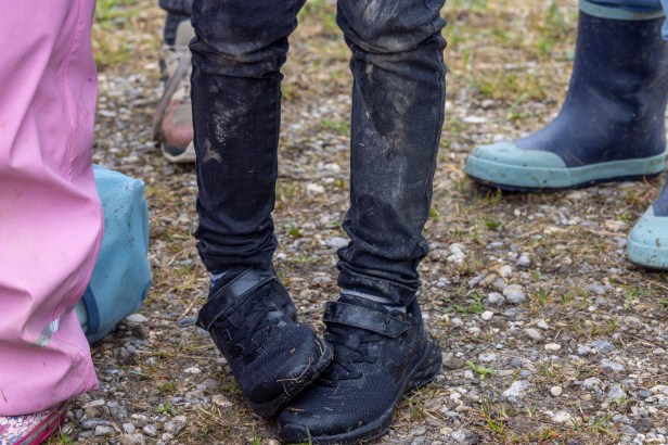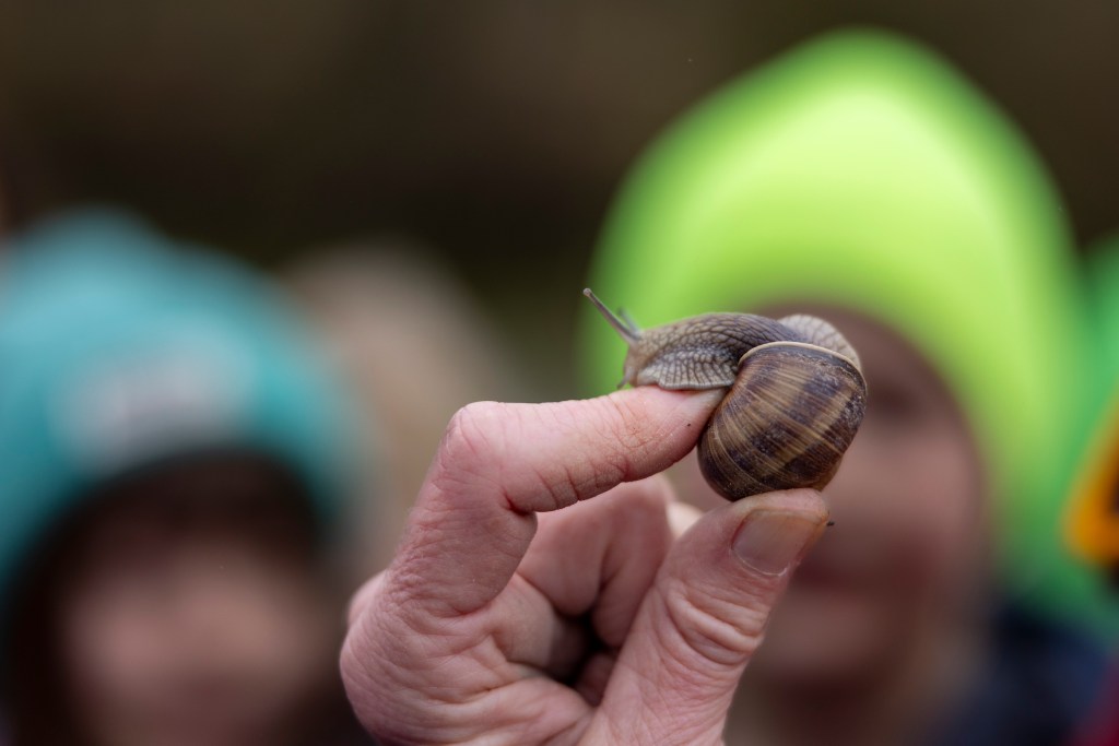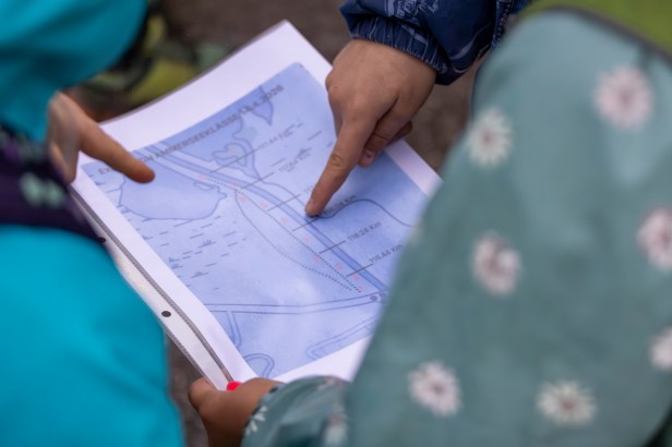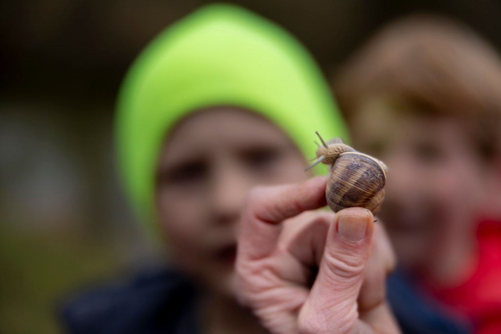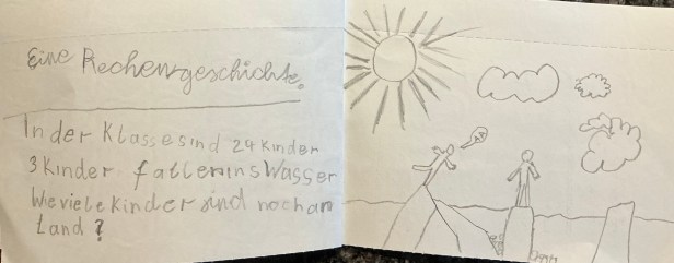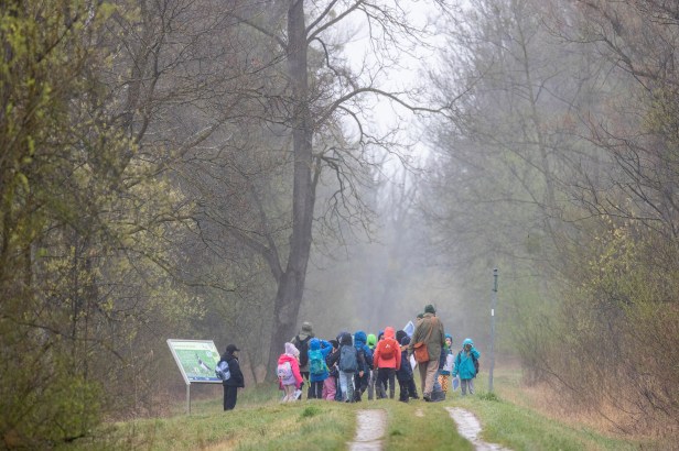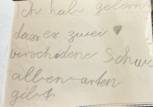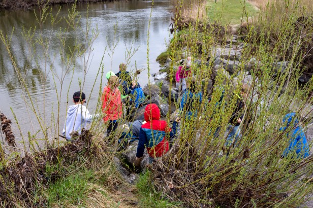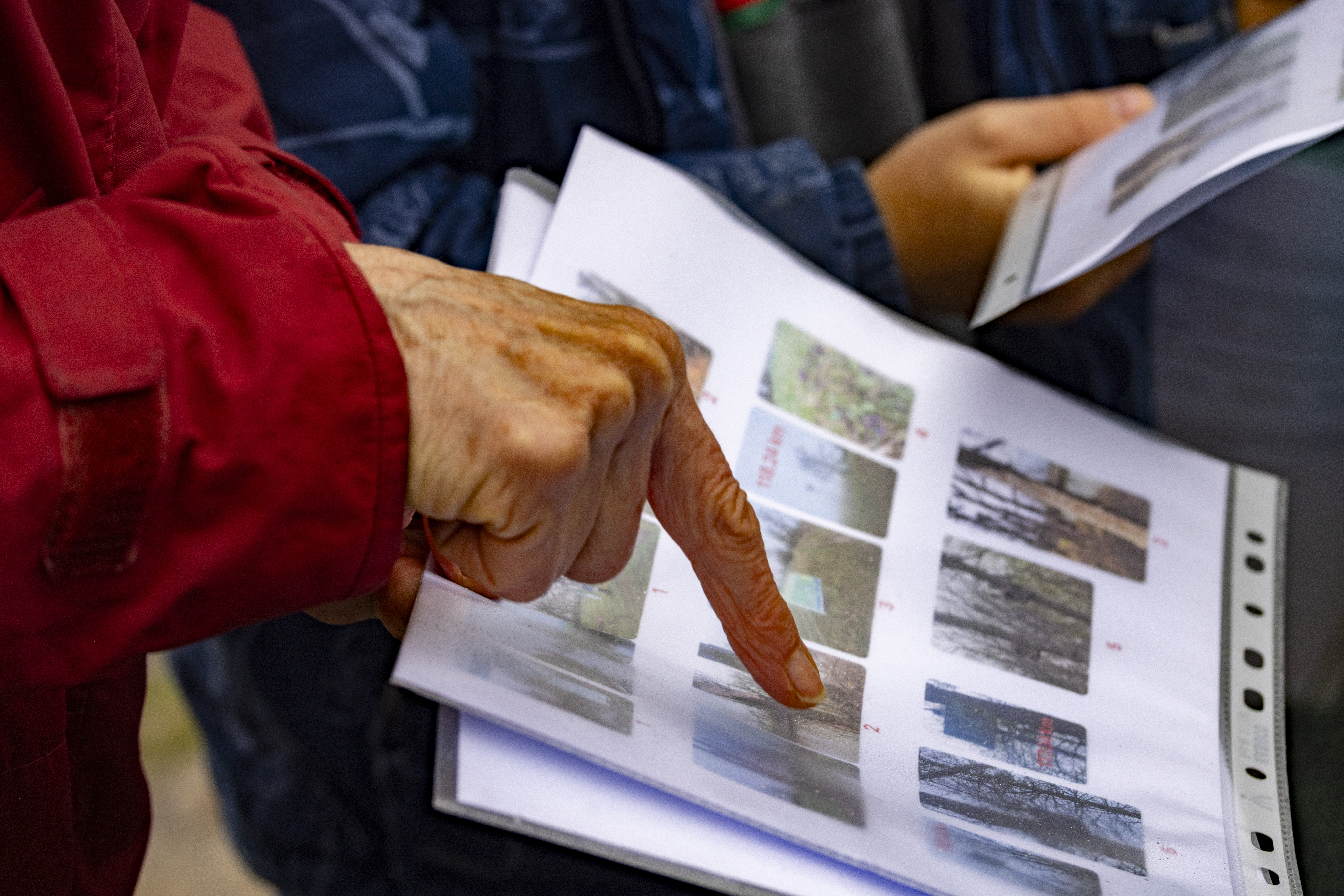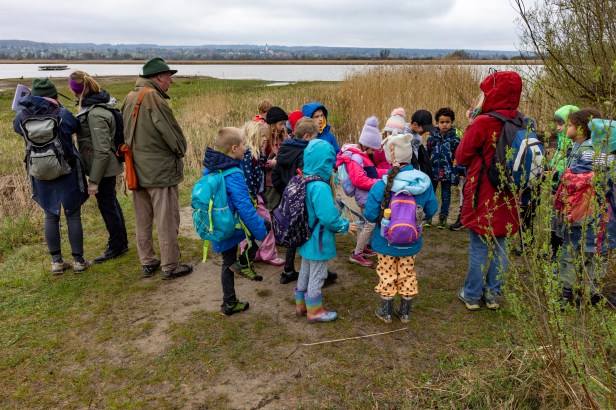 Wir üben mit den Ferngläsern die Vögel zu erkennen. Frau Hänel versteckt Fotos in den Büschen. Das Schauen mit dem Fernglas ist ganz schön schwer.